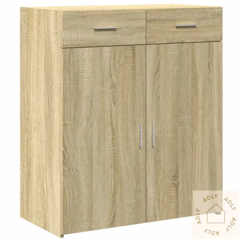 Holdbart materiale: Skjenken er laget av konstruert tre i høy kvalitet, noe som gir en jevn overflate og sikrer god slitestyrke, stabilitet og solid motstand mot fukt – ideelt når du ønsker varer som varer lenge i hjemmet ditt.Rikelig med oppbevaringsplass: Med to romslige skuffer har du alltid plass til å gjemme unna tingene dine pent og ryddig, enten det er servise, borddekorasjoner eller andre småting du vil ha lett tilgjengelig.Enkel å rengjøre: Skapet trenger minimalt med vedlikehold og kan enkelt tørkes over med en fuktig klut, slik at det ser ut som nytt selv ved daglig bruk.Praktiske dører: Oppbevaringsskapet har dører som gjør det ekstra enkelt å holde orden og skjule hverdagens rot, så rommet føles innbydende og oversiktlig.Advarsel: