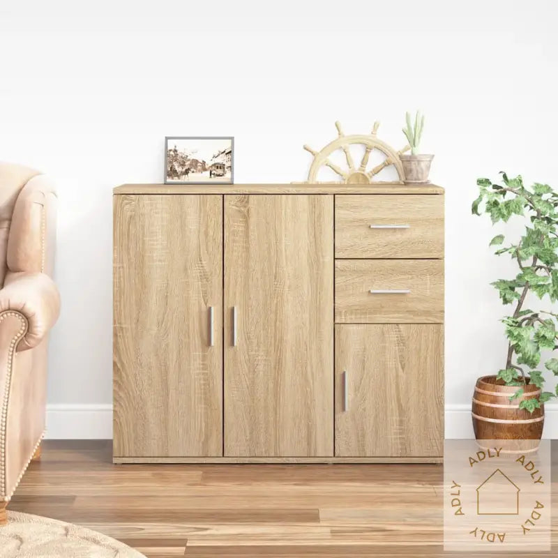 Denne klassiske skjenken i sonoma eik har et tidløst design som passer perfekt inn sammen med andre møbler til hjemmet ditt, uansett interiørstil. Den blir raskt et blikkfang samtidig som den er svært praktisk.
