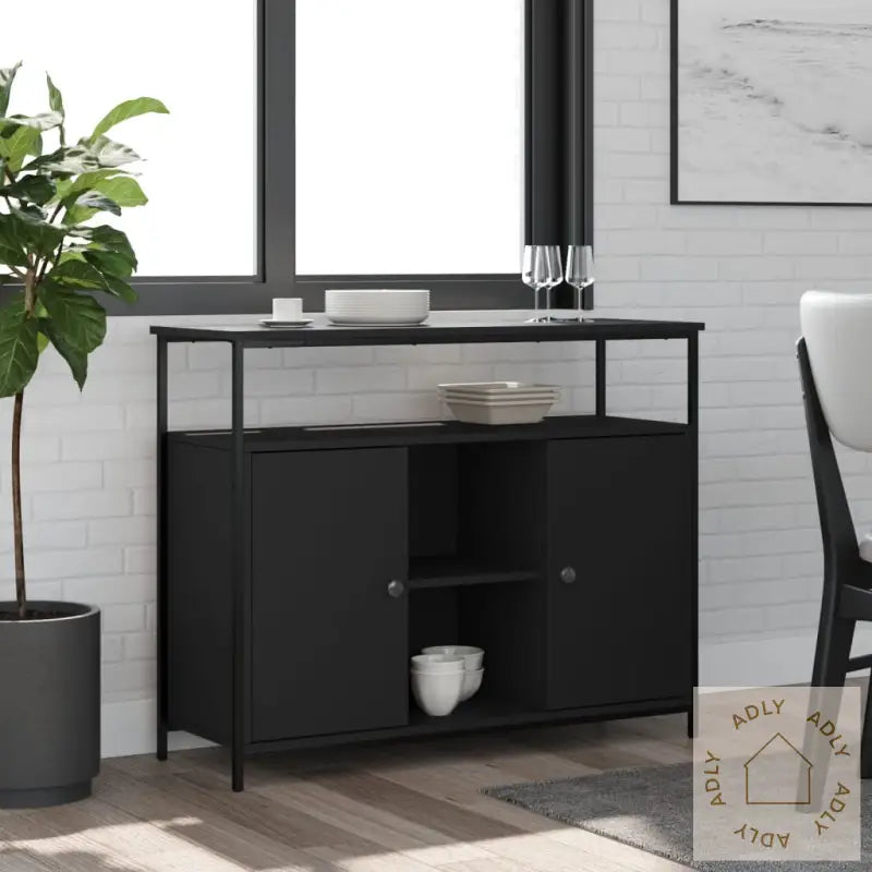 Slitesterkt materiale: Skjenken er laget av konstruert tre i høy kvalitet, noe som gir en robust og stabil struktur, samtidig som den glatte overflaten gjør det enkelt å tørke av støv og flekker med en fuktig klut. Materialet er motstandsdyktig mot fuktighet, så dette møbelet holder seg pent lenge og er enkelt å vedlikeholde.Rikelig med lagringsplass: Du får god plass til å oppbevare alt fra servise til bøker og andre daglige nødvendigheter, slik at hjemmet ditt alltid kan være ryddig og organisert. Oppbevaringsskapet gir enkel tilgang, og du slipper rot.Visningsfunksjon: Øverst på sideskapet har du en utmerket plass til å stille ut dekorasjoner, fotoalbum, eller små planter – dette gir et personlig preg og løfter innredningen i rommet.Justerbare føtter: De fire justerbare føttene med plastputer sørger for at skjenken står stødig selv om gulvet ikke er helt jevnt. Dette gir ekstra stabilitet og beskytter gulvet mot riper. Justerbare føtter er en stor fordel uansett hvilket rom du plasserer møblene i, og det er spesielt praktisk hvis du har bokhyller og stående hyller ved siden av.Advarsel: