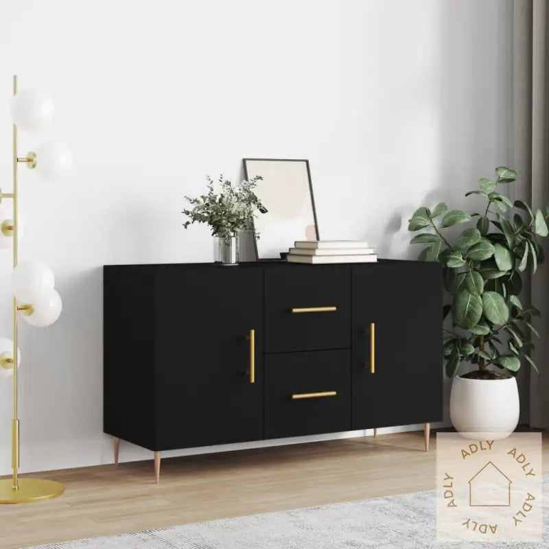 Slitesterkt materiale: Skjenken er laget av konstruert treverk av høy kvalitet, som har en jevn og elegant overflate. Dette materialet sikrer at møbelet er robust, stabilt, og motstandsdyktig mot fuktighet – noe som gjør det enkelt å holde pent over tid.Metallben: De solide metallbena gir skjenken et moderne preg og sørger for god stabilitet. Metallbenene gir også en rolig og stilig kontrast til treverket, noe som gjør møbelet ekstra tiltalende i moderne hjem.Rikelig med lagringsplass: Skjenken har romslige skap og skuffer, slik at både dekor og hverdagslige nødvendigheter kan organiseres effektivt og være lett tilgjengelige. Det er plass nok til alt fra servise til småting du vil ha samlet på ett sted.Stabil og robust topp: Topplaten på skjenken gir deg et ideelt område for å vise frem favorittdekor, bilder eller potteplanter – perfekt for å sette et personlig preg på interiøret.Praktiske dører: Gjem vekk eiendelene dine bak lukkede dører for å beskytte dem mot støv, samtidig som det gir hjemmet et ryddig uttrykk. Med smarte håndtak på både dører og skuffer er det enkelt å åpne og lukke oppbevaringsplassen.Advarsel: