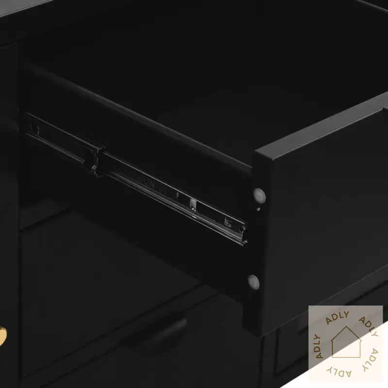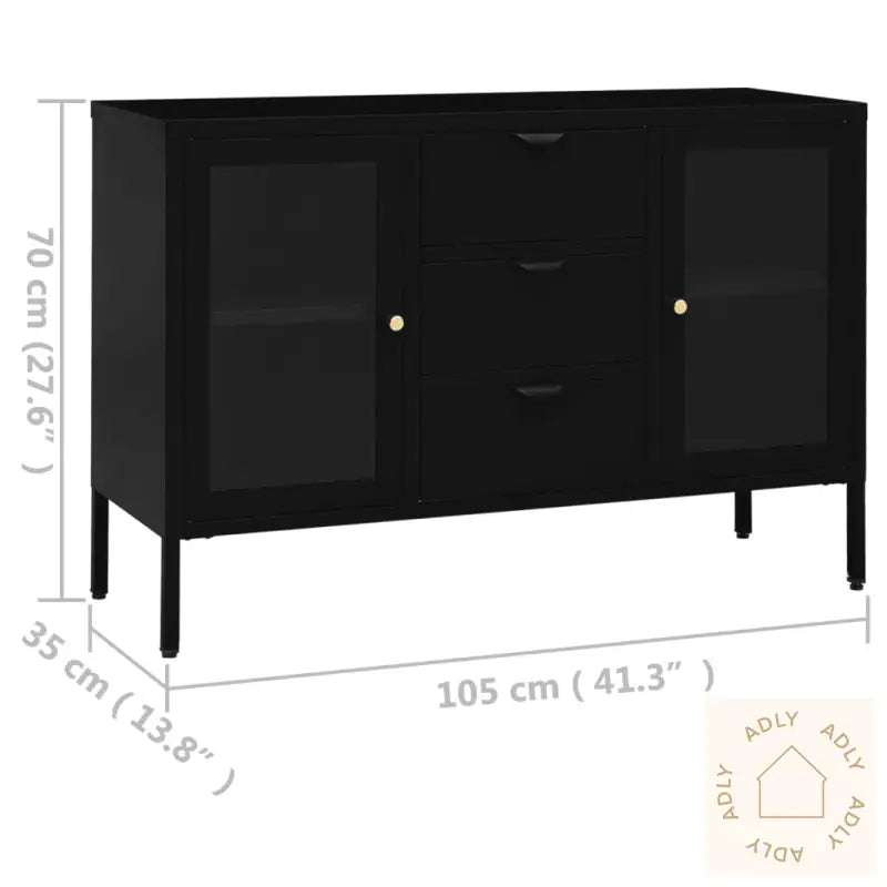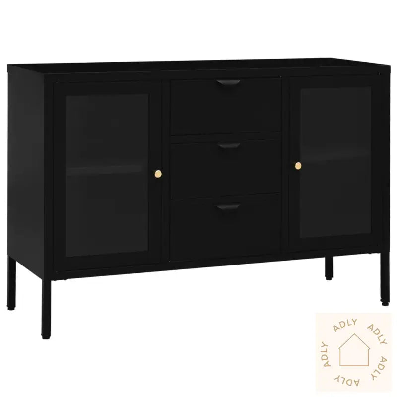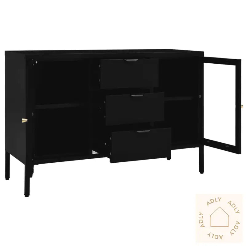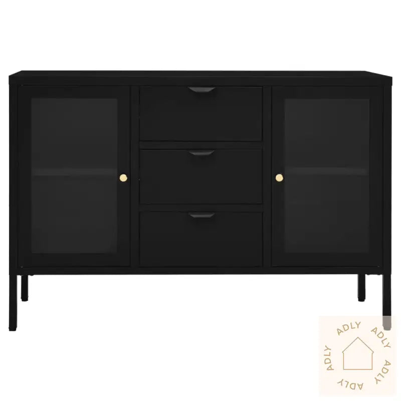 Farge: svartMaterialer: stål, herdet glassMål: 105 x 35 x 70 cm (B x D x H)Med 2 justerbare hyller3 skuffer med 3-seksjons kulelagerskinnerMed benutjevnere på bunnenLastekapasitet per hylle: 15 kgLastekapasitet per skuff: 20 kgTotal lastekapasitet: 90 kgMontering kreves: ja