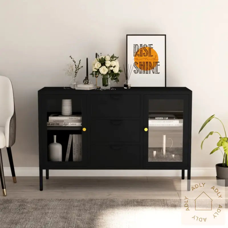 Denne skjenken kombinerer elegant og klassisk design med både dekorative og praktiske fordeler og blir dermed et smart valg til møbler til hjemmet. Den solide konstruksjonen består av stål og herdet glass, noe som sikrer lang holdbarhet og styrke for daglig bruk gjennom mange år. Herdet glass gir skapet et moderne uttrykk samtidig som det bidrar til ekstra sikkerhet og slitestyrke.