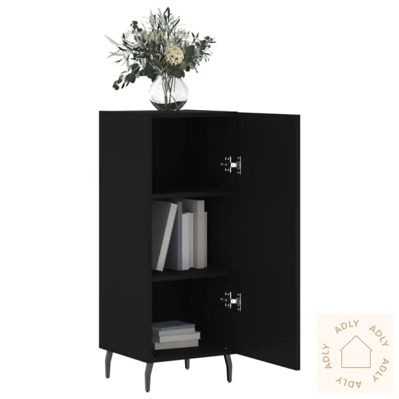 Slitesterkt materiale: Det konstruerte treverket sørger for kvalitet, slitestyrke og en jevn overflate, samtidig som det gir styrke, stabilitet og god motstand mot fukt. Dette gjør skjenken til et trygt valg blant møbler, spesielt hvis du ønsker noe som holder seg pent år etter år.Metallben: De solide metallbena gir en kul, avslappet stemning og bidrar til en moderne touch. Samtidig sikrer de at skjenken står stabilt på ulike underlag – perfekt for deg som liker robuste møbler som tåler litt av hvert.God lagringsplass: Med tre rom får du god plass til å holde ting organisert, enten det er servise, bøker, eller elektronikk. Du kan bruke den i stuen, på kontoret eller soverommet– dette er fleksible bokhyller og stående hyller i én og samme løsning.Stabil og robust topp: Toppen av skjenken passer perfekt for å vise frem alt fra dekorative elementer til bilder og grønne planter, noe som gir ekstra liv og personlighet til boligen din.Praktisk dør: Døren holder innholdet skjult og fritt for støv, og du åpner oppbevaringsskapet raskt takket være det praktiske håndtaket.Advarsel: