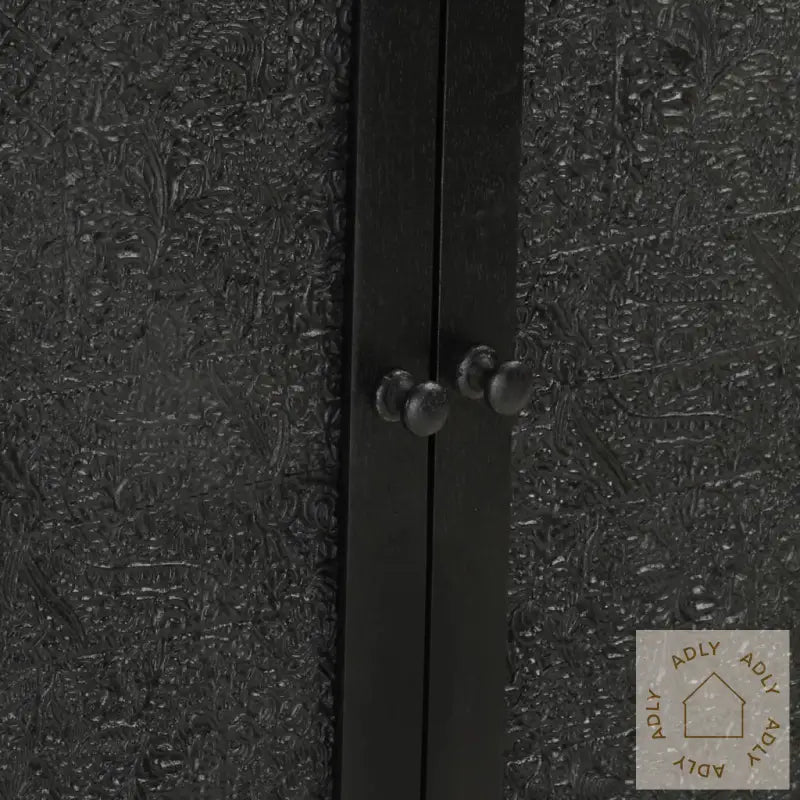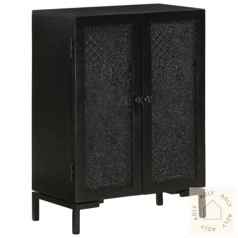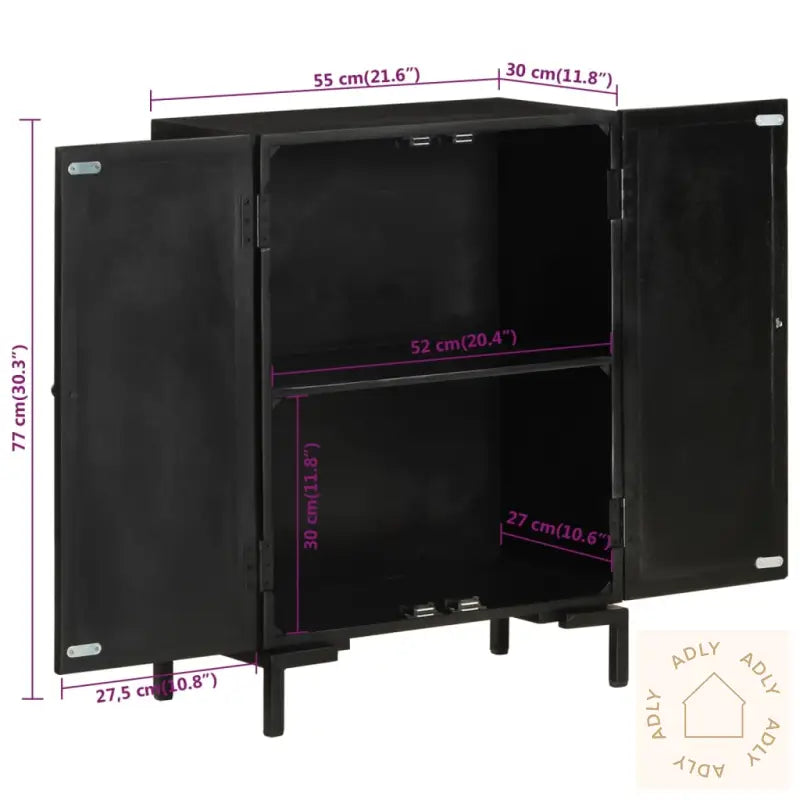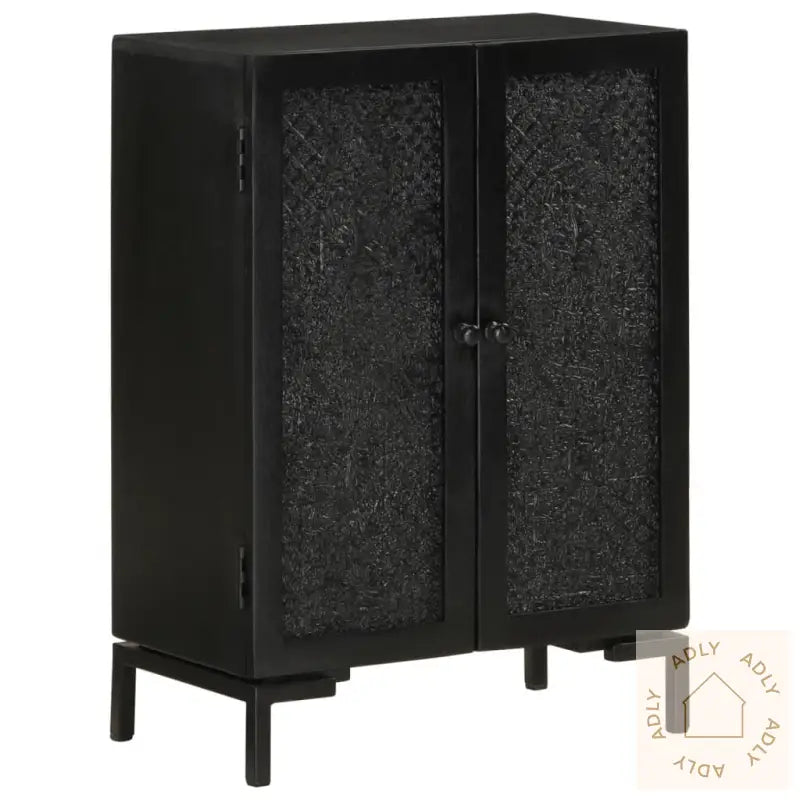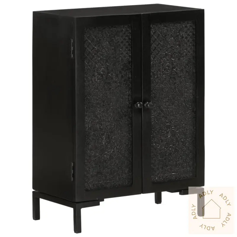 Heltre mango: Skapet er laget av heltre mango – et robust, tropisk treslag kjent for sin styrke og holdbarhet. De naturlige, varierte trekornene gir møbelet et varmt og levende uttrykk. Hvert skap er unikt, så du får alltid et personlig preg i interiøret ditt.Stabile ben: De pulverlakkerte jernbena gir både stabilitet og et moderne, industrielt utseende. Dette gjør at skjenken passer godt sammen med både klassisk og moderne innredning.Rikelig med oppbevaringsplass: Med to separate rom får du god plass til å organisere daglige nødvendigheter, slik at alt er lett tilgjengelig og området ser ryddig ut.Solid topp: Den solide toppen i heltre mango gir deg mulighet til å sette frem favorittdekorasjoner, som fotorammer, grønne planter eller vaser, noe som kan gjøre hjemmet ditt ekstra innbydende.Utskåret design: Utskjæringene i dørene gir en diskret eleganse og bringer ekstra liv til rommet. Detaljene fremhever det håndverksmessige ved skjenken og gjør den til et ekte blikkfang.Godt å vite:
