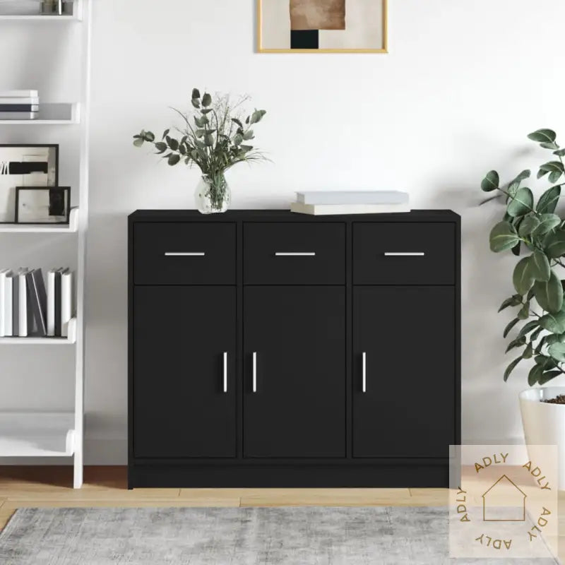 Slitesterkt materiale: Skapet er produsert i konstruert tre, som gir den en robust konstruksjon med jevn overflate og lang levetid. Materialet er kjent for styrke, stabilitet og motstandsdyktighet mot fukt, så du får en praktisk løsning som tåler hverdagsbruk. Enkelt å holde rent; bare tørk med en fuktig klut ved behov.Rikelig med lagringsplass: Dette oppbevaringsskapet har god plass til oppbevaring av alt fra servise og glass til bøker og personlige eiendeler. Hold orden på dine ting og sørg for at alt har sin faste plass.Visningsmuligheter: Toppen av skjenken er ideell til å vise frem dekorative detaljer, fotoalbum, minner og grønne småplanter. Gi rommet ditt et personlig preg og trekk blikket mot det du er glad i.Praktiske dører: Dørene gjør det enkelt å skjule eiendeler og beskytte dem mot støv, slik at du alltid kan opprettholde et ryddig inntrykk hjemme.Skjenken passer ypperlig sammen med andre møbler – enten du ønsker å kombinere med moderne eller klassiske løsninger for hjemmet. Dette allsidige skapet utvider oppbevaringsmulighetene og styrker den helhetlige stilen i hjemmet ditt.