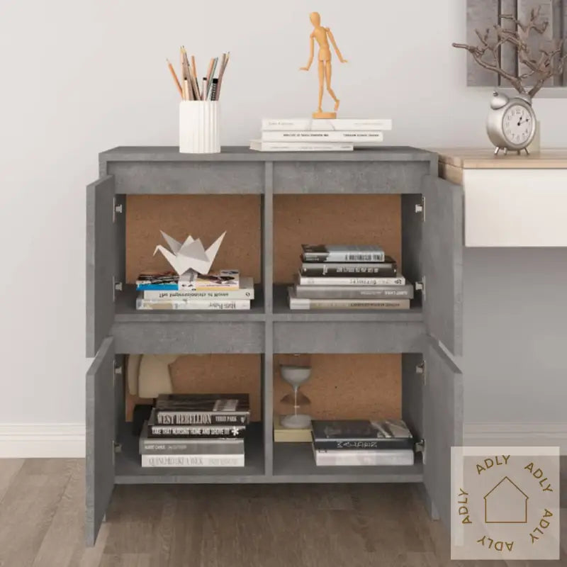 Med fire praktiske dører har sideskapet masse lagringsplass til bøker, multimedieenheter og andre nips. Den stabile bordplaten på toppen gir deg mulighet til å vise frem dine personlige favoritter, enten det er dekor, fotorammer eller grønne planter. Materialet er enkelt å holde rent med en fuktig klut – hverdagsvennlig for folk som vil ha pene møbler uten stress.