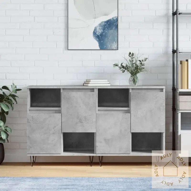 For å forhindre at skjenkene velter må de sikres til veggen med den medfølgende festeanordningen. Dette gir bedre sikkerhet, spesielt i hjem med barn.Farge: betonggråMaterialer: konstruert tre, metallSamlet mål: 120 x 35 x 70 cm (B x D x H)Montering kreves: jaLeveransen inneholder:2 x skjenkerLegal Documents: