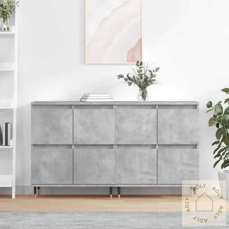 Slitesterkt materiale: Disse skjenkene er laget av konstruert tre av høy kvalitet. Materialet gir skapene lang levetid, god stabilitet, og tåler daglig bruk. Den glatte overflaten gjør det dessuten enkelt å rengjøre møblene slik at de forblir pene lenge. Motstanden mot fuktighet betyr at det passer bra i ulike rom, inkludert gang eller kjøkken.Rikelig med lagringsplass: Med romslige skap og hyller gir skjenkene deg rikelig plass til å holde alt fra servise og bøker til hverdagslige nødvendigheter i ordnet og lett tilgjengelig. Dette hjelper deg å unngå rot slik at hjemmet ditt alltid føles luftig og innbydende.Visningsfunksjon: Toppen av skjenken gir en flott flate for dekorasjon. Plasser bilder, planter eller favorittdekorasjoner på toppen og skap ditt eget personlige preg. Slik blir skjenkene ikke bare praktiske, men også et blikkfang i stuen eller spisestuen.Advarsel: