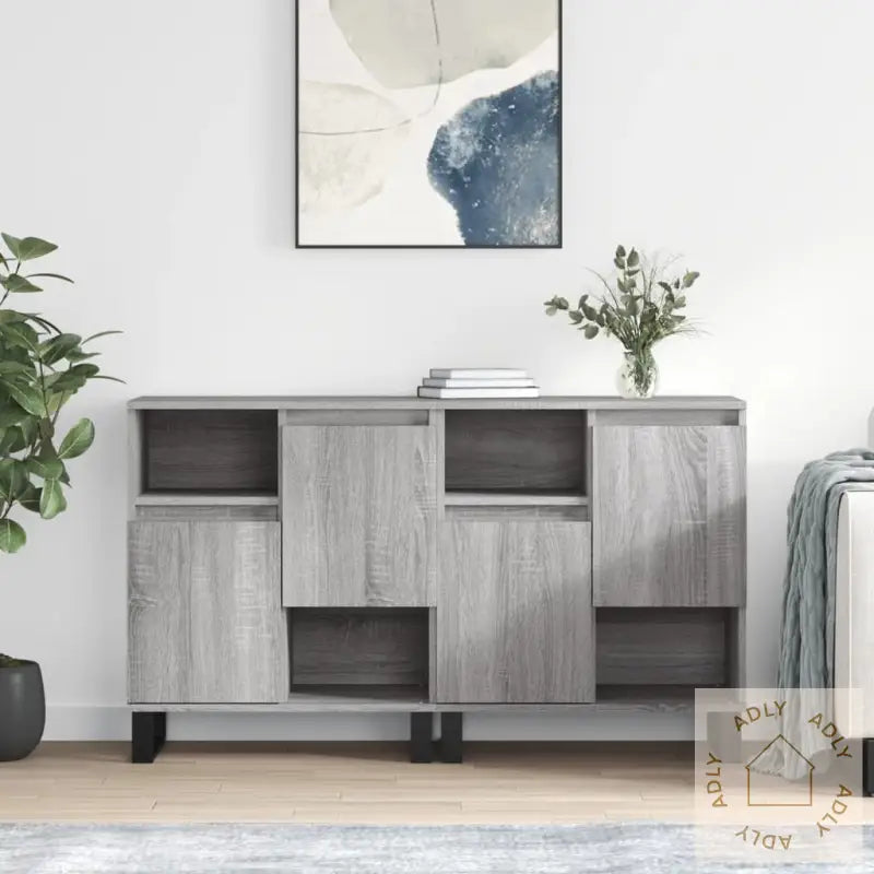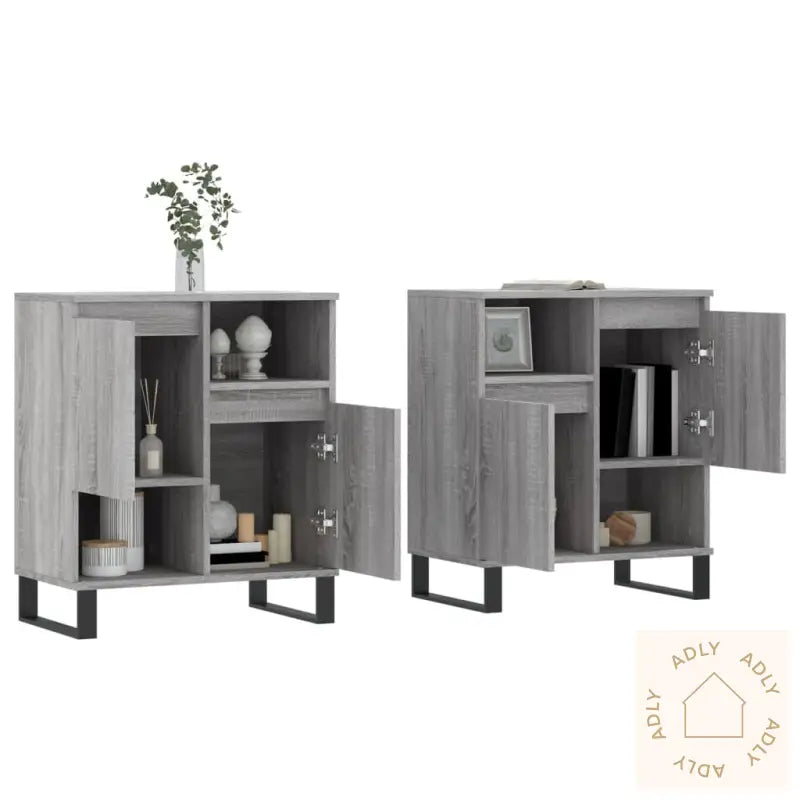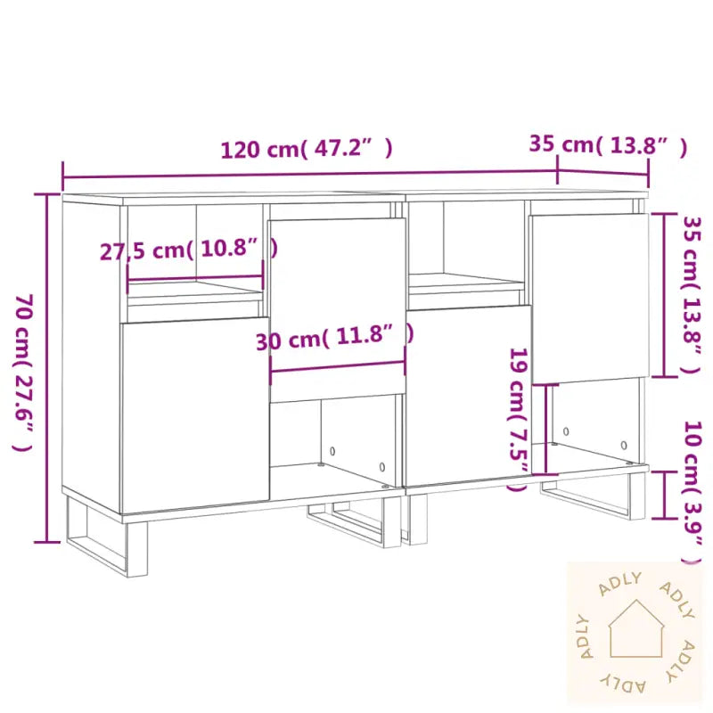 Slitesterkt materiale: Skjenkene er laget av konstruert treverk, som kjennetegnes av høy kvalitet, jevn overflate og solid holdbarhet. Materialet gir god styrke og stabilitet, samtidig som det står imot fukt – perfekt for møbler du skal ha glede av lenge.Rikelig med lagringsplass: Med disse oppbevaringsskapene får du masse plass til å organisere alt fra servise til pyntegjenstander, slik at daglige nødvendigheter alltid er lett tilgjengelige og rommet fremstår ryddig.Visningsfunksjon: Toppen av skjenken er ideell for å vise frem bilder, dekorative elementer eller blomster. Dette gir deg muligheten til å sette et personlig preg på stua eller gangen og gjøre innredningen mer levende.Advarsel: