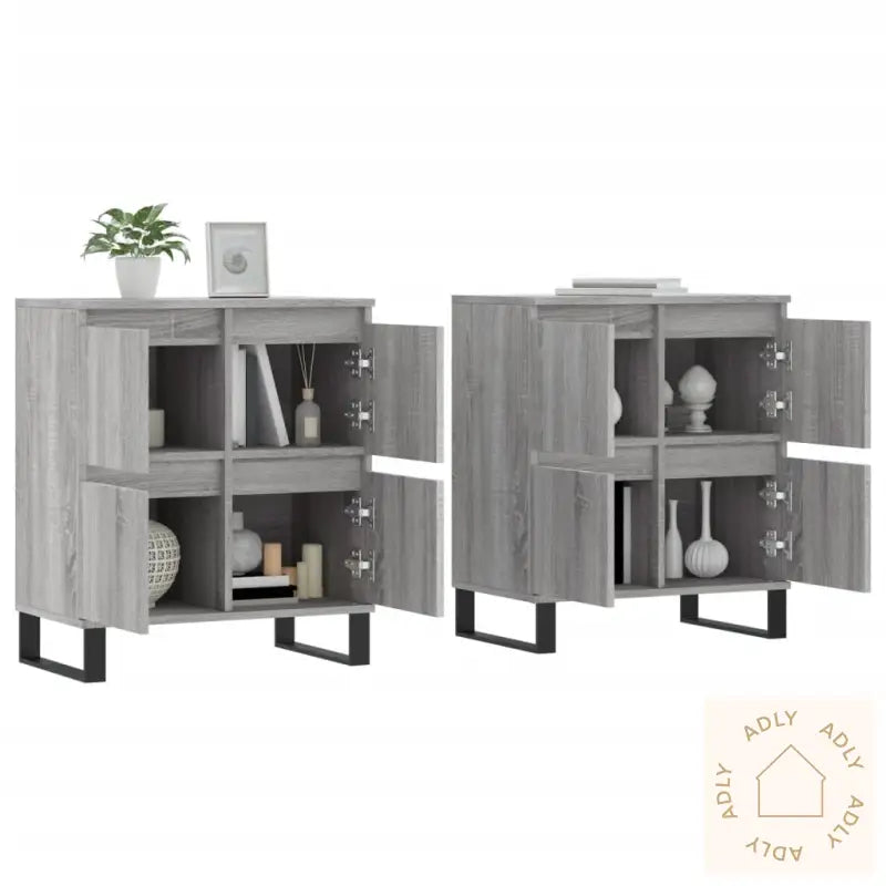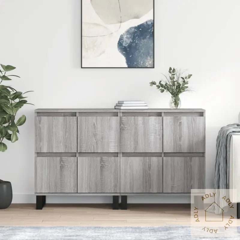 Slitesterkt materiale: Skjenkene er laget av konstruert tre av høy kvalitet, som gir en jevn overflate og sørger for både styrke og stabilitet. Dette materialet tåler daglig bruk og er samtidig motstandsdyktig mot fuktighet, noe som gjør møblene holdbare over tid.Rikelig med lagringsplass: Skapet tilbyr god oppbevaringsplass, slik at du enkelt kan holde orden på alt fra servise til småting du bruker i det daglige. God lagringsplass hjelper deg å organisere hjemmet og gir enkel tilgang til nødvendighetene dine.Visningsfunksjon: Den solide bordplaten gir deg mulighet til å vise frem favorittbilder, dekorasjoner eller blomster, og dermed sette ditt personlige preg på rommet. Skap et innbydende miljø med møbler som kombinerer praktisk oppbevaring og flotte visningsmuligheter.Advarsel: