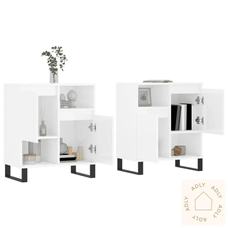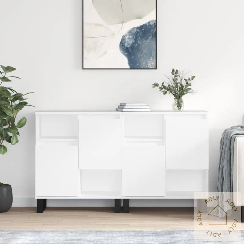 Slitesterkt materiale: Skjenkene er laget av konstruert treverk av eksepsjonell kvalitet, som har en jevn overflate, høy styrke og utmerket stabilitet. Materialet motstår fuktighet, noe som gjør det enkelt å holde rent og gir varig verdi til dine nye møbler.God lagringsplass: Oppbevaringsskapene har rikelig med plass til alt fra servise til bøker og daglige nødvendigheter, slik at du kan holde rommet organisert, ryddig og alle viktige ting lett tilgjengelig.Visningsmuligheter: Øverst på skjenken er det god plass til å dekorere med bilder, planter eller andre pyntegjenstander. Litt personlig pynt gjør oppbevaringsskapet til et levende og inspirerende element i innredningen din, uansett om det står i stuen, gangen eller på soverommet.Advarsel:
