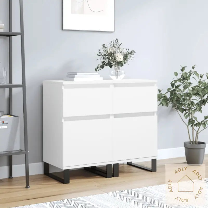 Slitesterkt materiale: Skjenkene er laget av konstruert tre, kjent for sin kvalitet med en jevn og moderne overflate. Materialet byr på styrke, stabilitet og motstand mot fuktighet, noe som gir deg robuste møbler du slipper å være redd for i daglig bruk. Oppbevaringsskapene krever minimalt vedlikehold og renses lett med en fuktig klut, så de holder seg fine år etter år.