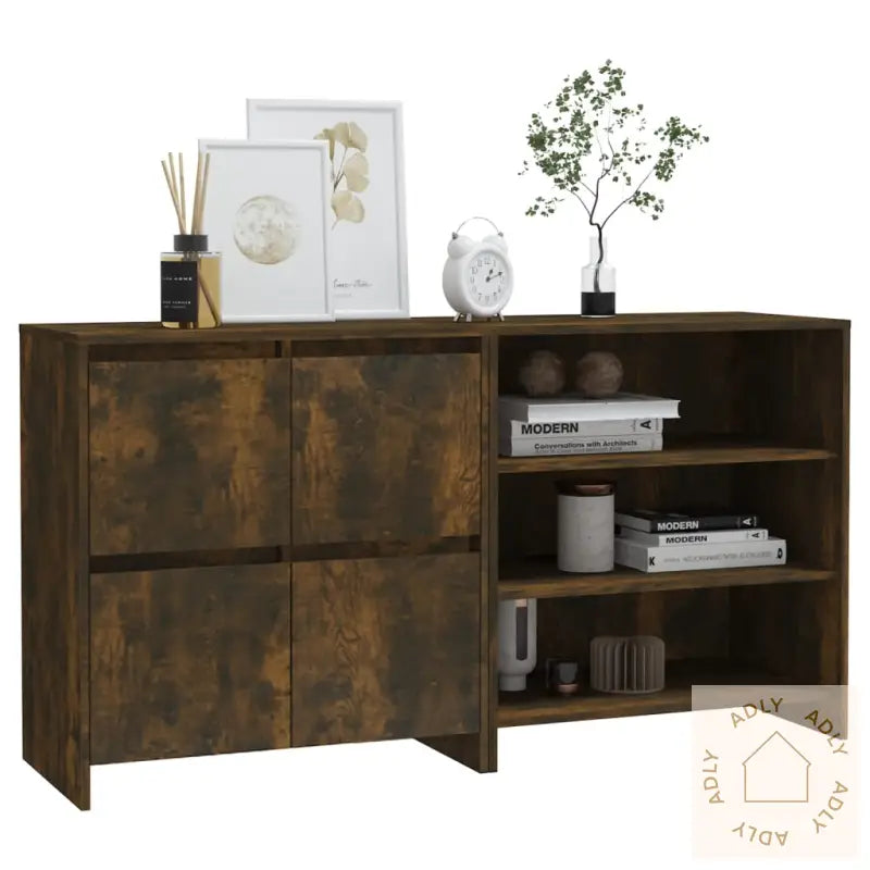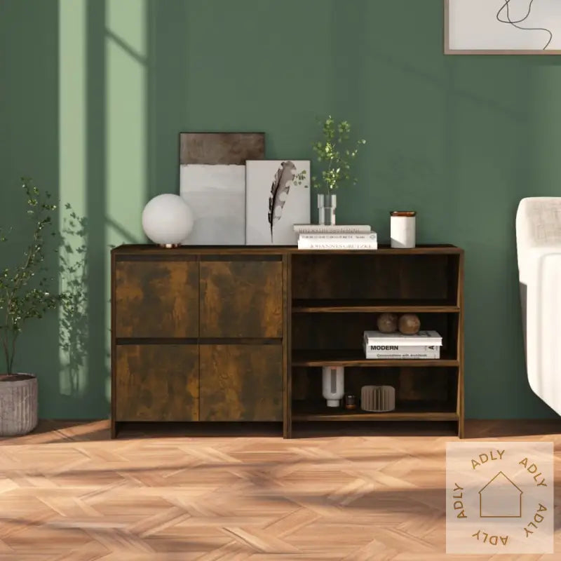 Det stilrene designet i røkt eik løfter helhetsinntrykket hjemme, og materialvalget av konstruert tre bidrar til slitestyrke samtidig som det er enkelt å vedlikeholde. Du kan raskt friske opp overflaten med en fuktig klut, og skjenkene holder seg pent over tid.