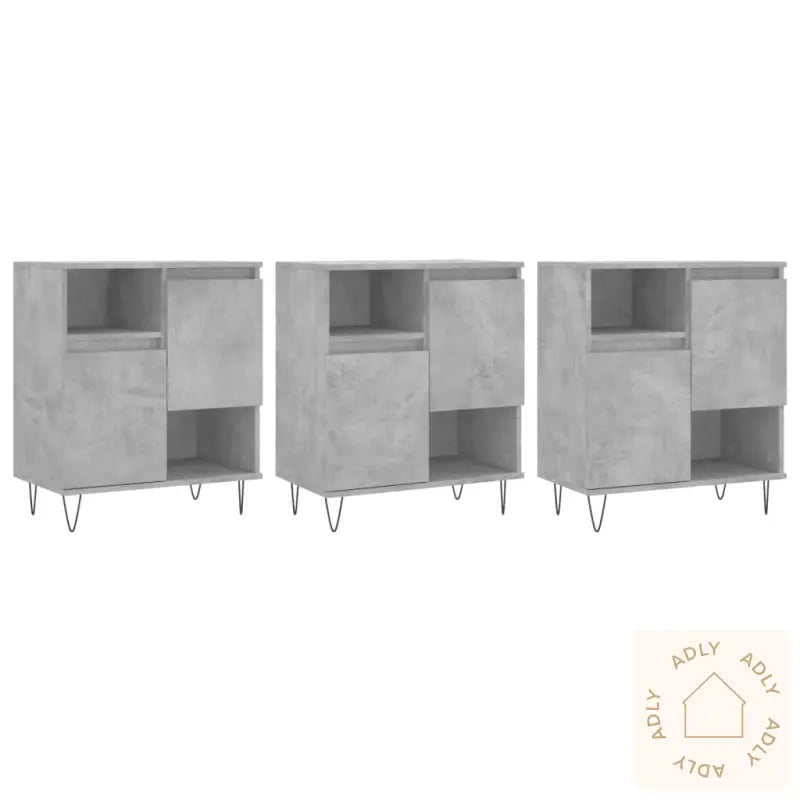 For å sørge for ekstra sikkerhet, må produktet sikres i veggen med festeanordningen som følger med. Dette hindrer at skapet kan velte, spesielt hvis du har små barn hjemme.Farge: Betonggrå, som matcher mange typer utendørsmøbler og moderne interiør.Materialer: Konstruert tre og metall kombineres for å gi et solid produkt.Størrelse: Totalt mål er 180 x 35 x 70 cm (B x D x H), så det er god plass både inni og oppå skapet.Montering kreves, men det er enkelt med den medfølgende veiledningen.Leveransen inneholder:3 x skjenker for allsidig bruk i flere rom.Legal Documents: