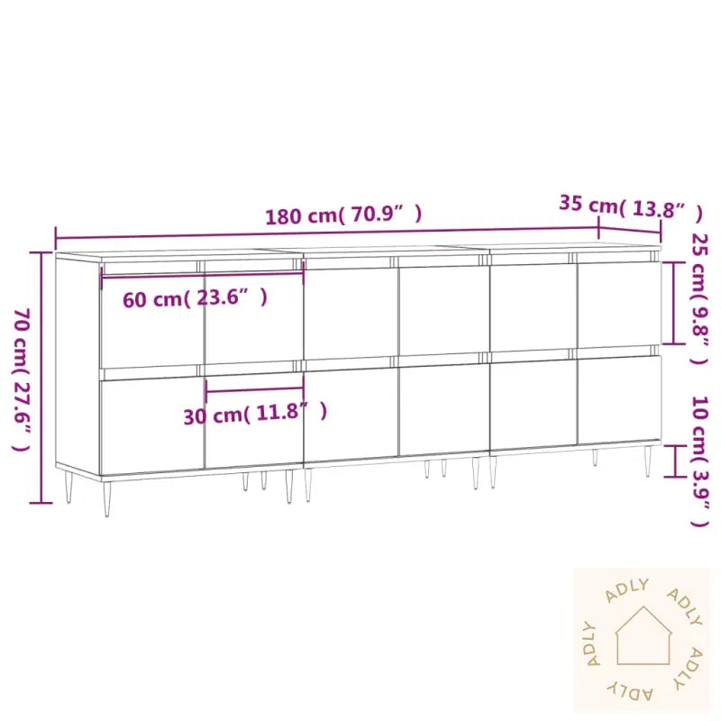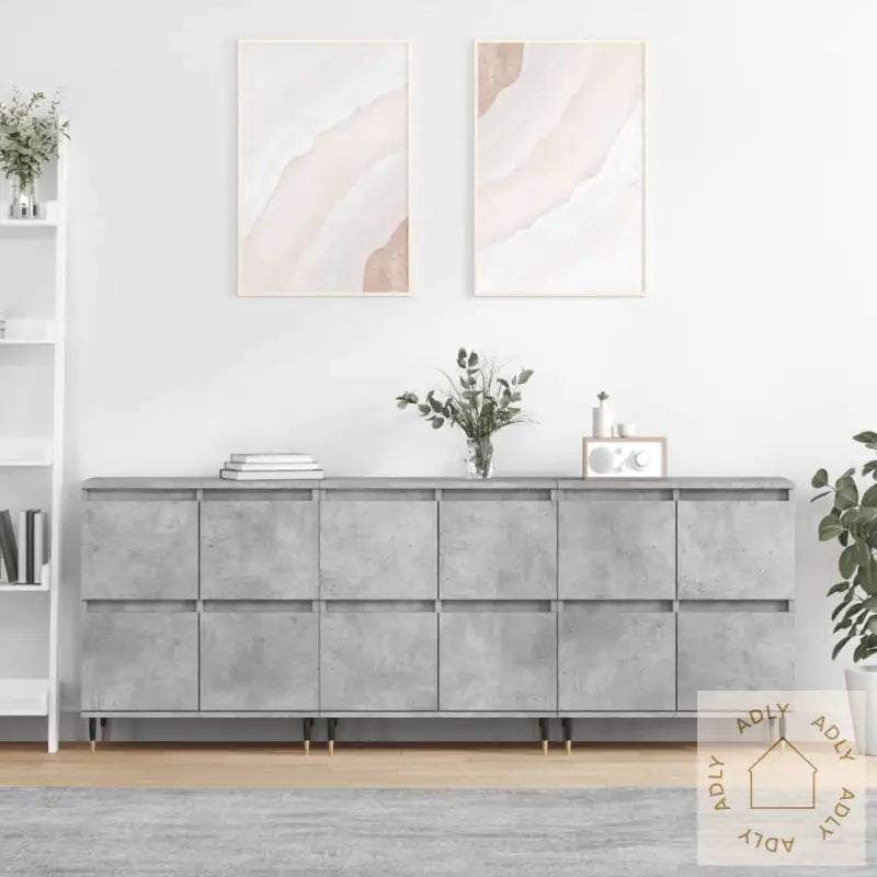 For å forhindre at skjenkene velter, må dette produktet brukes med den medfølgende festeanordningen.Farge: betonggråMaterialer: konstruert tre, metallSamlet mål: 180 x 35 x 70 cm (B x D x H)Montering kreves: jaLeveransen inneholder:3 x skjenkerLegal Documents: