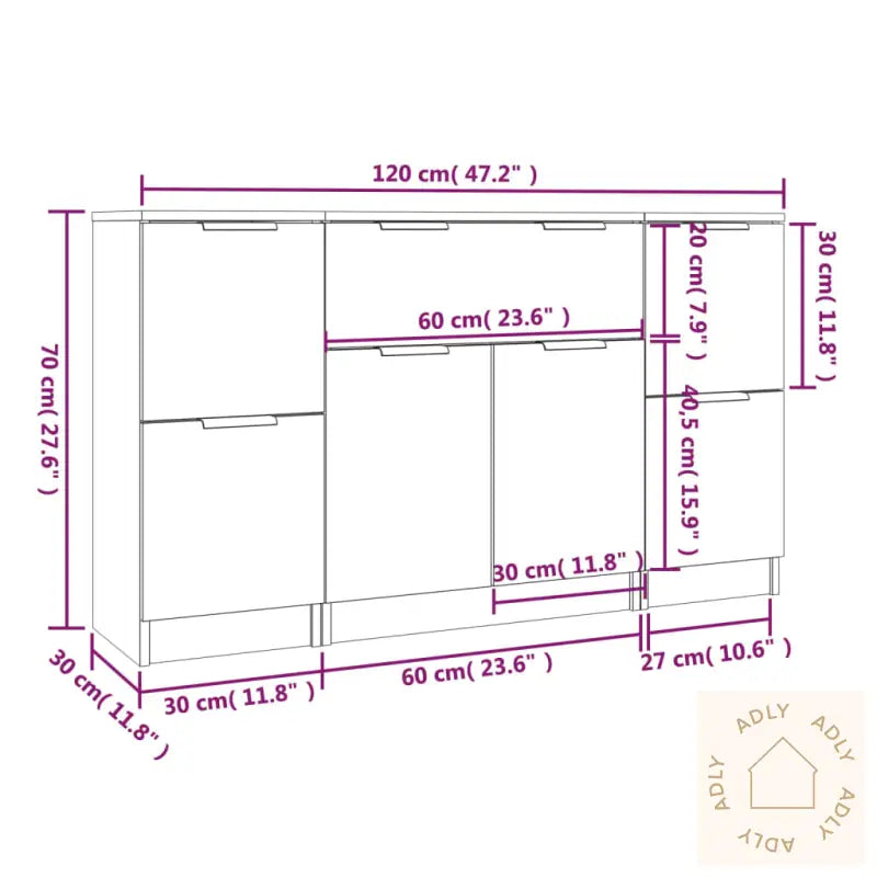 Lettstelt og slitesterkt materiale: Skjenkene er produsert i konstruert tre av høy kvalitet. Dette materialet gir ikke bare en glatt og elegant overflate, men gjør også at møblene er enkle å holde rene. Det konstruerte treverket bidrar til styrke, stabilitet og god motstand mot fukt – ideelt for daglig bruk.