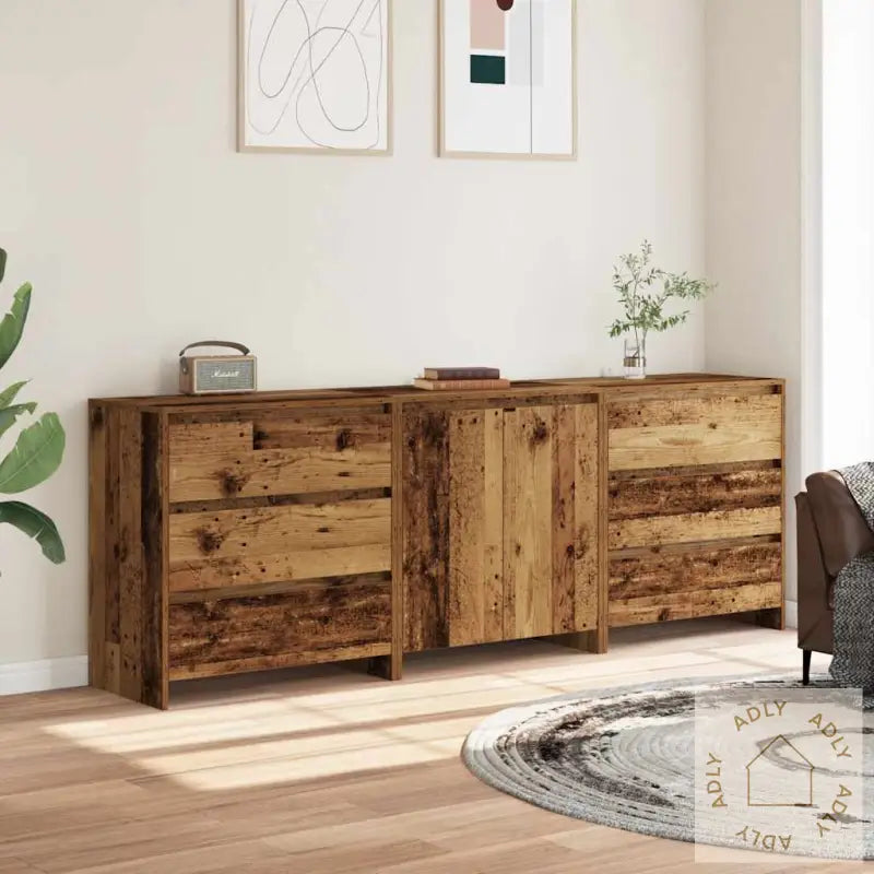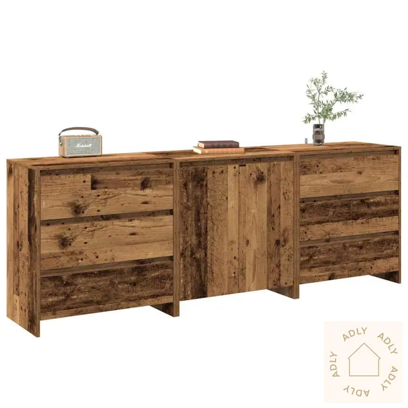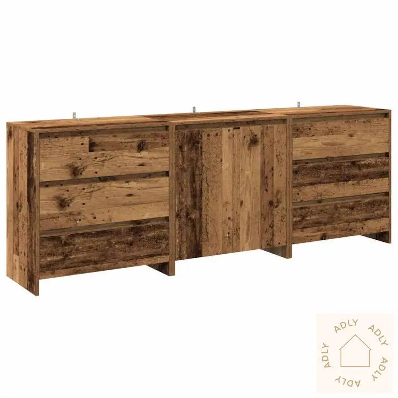 For ekstra sikkerhet bør den medfølgende festeanordningen brukes for å unngå at møbelet velter.Farge: gammelt treMateriale: konstruert treMål (skjenk med dører): 70 x 41 x 75 cm (B x D x H)Mål (skjenk med skuffer): 70 x 41 x 75 cm (B x D x H)Montering kreves: jaLeveransen inneholder:1 x skjenk med dører2 x skjenker med skuffer
