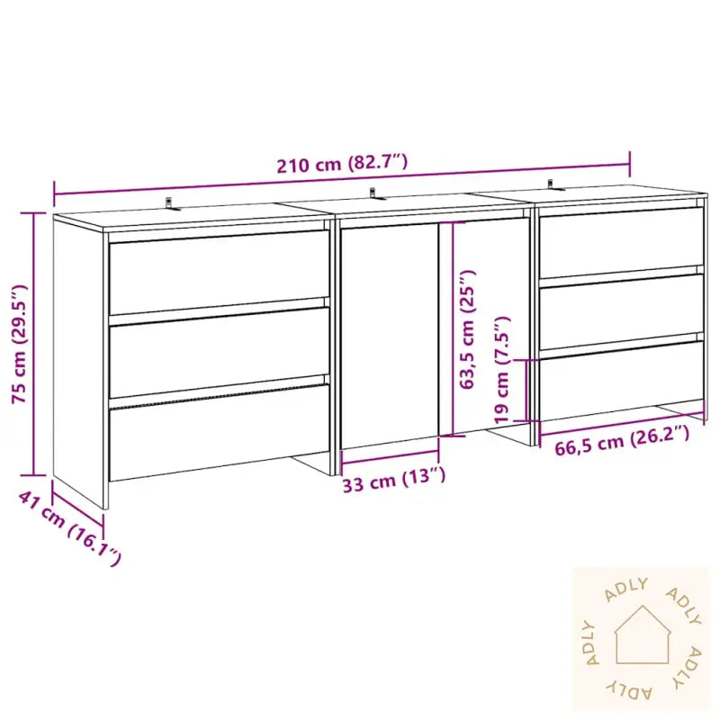 Stabilt og slitesterkt materiale: Skjenkene er laget av konstruert tre – et veldig pålitelig valg blant moderne møbler. Dette materialet er kjent for å være robust og gir lang levetid, med en glatt overflate som tåler både fuktighet og daglig bruk uten å sprekke eller vri seg. Perfekt for deg som ønsker solide bokhyller og stående hyller.Rikelig lagringsplass: Med masse plass bak både dører og i skuffer finner du enkelt plass til alt fra servise til småting, slik at du kan ha det ryddig og lett tilgjengelig hjemme.Robust bordplate: Den sterke bordplaten gir en perfekt plass til dekor, bilder eller grønne planter, og gjør det lett å sette et personlig preg på rommet – ideelt i kombinasjon med andre møbler til hjemmet.Enkelt å vedlikeholde: Skjenkens glatte overflate gjør rengjøringen superenkel. Bare tørk over med en fuktig klut og skapet forblir like fint med minimalt vedlikehold.Advarsel: