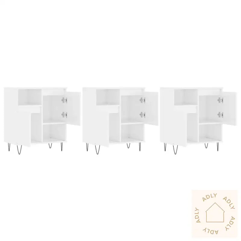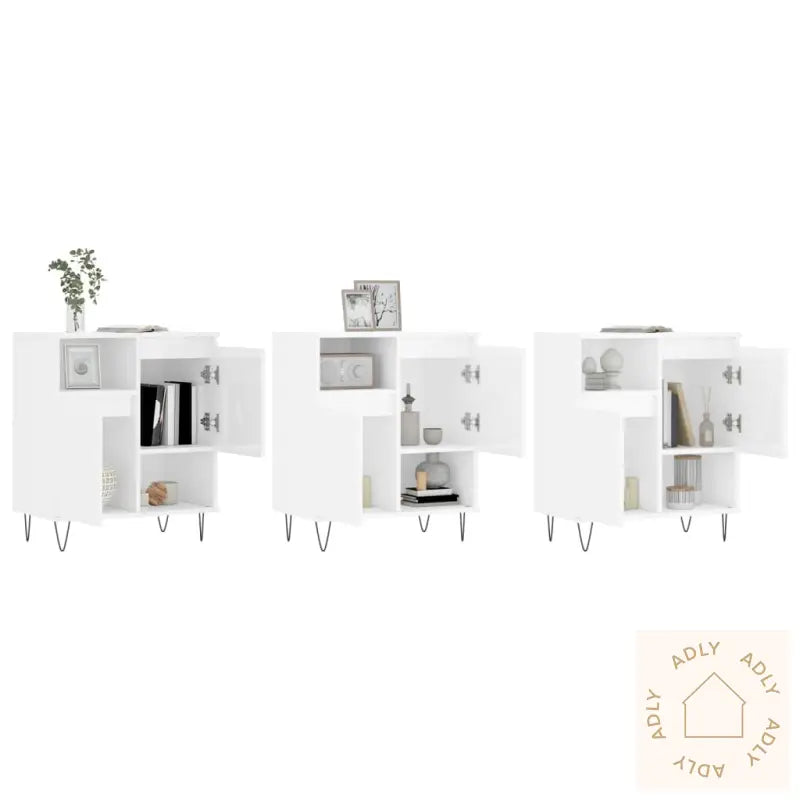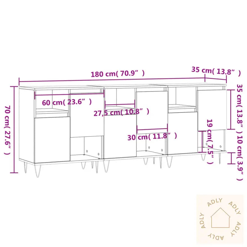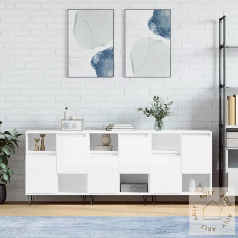 Slitesterkt materiale: Skjenkene er produsert i konstruert treverk av høy kvalitet. Materialet gir en jevn og solid overflate som tåler daglig bruk, samtidig som det gir god styrke, stabilitet og beskyttelse mot fuktighet. Dette sikrer lang levetid for dine møbler.Rikelig med lagringsplass: Skapene har romslige hyller og skapdører som gjør det enkelt å holde orden på dine daglige nødvendigheter – alt fra servise og glass, til bøker, dekorasjoner eller andre småting du vil ha lett tilgjengelig.Visningsfunksjon: Skjenkens overflate gjør det perfekt å vise frem favorittbilder, plantepotter, lysestaker eller personlige dekorobjekter. La din egen stil komme til uttrykk og gjør møblene til et funksjonelt blikkfang i rommet.Advarsel: