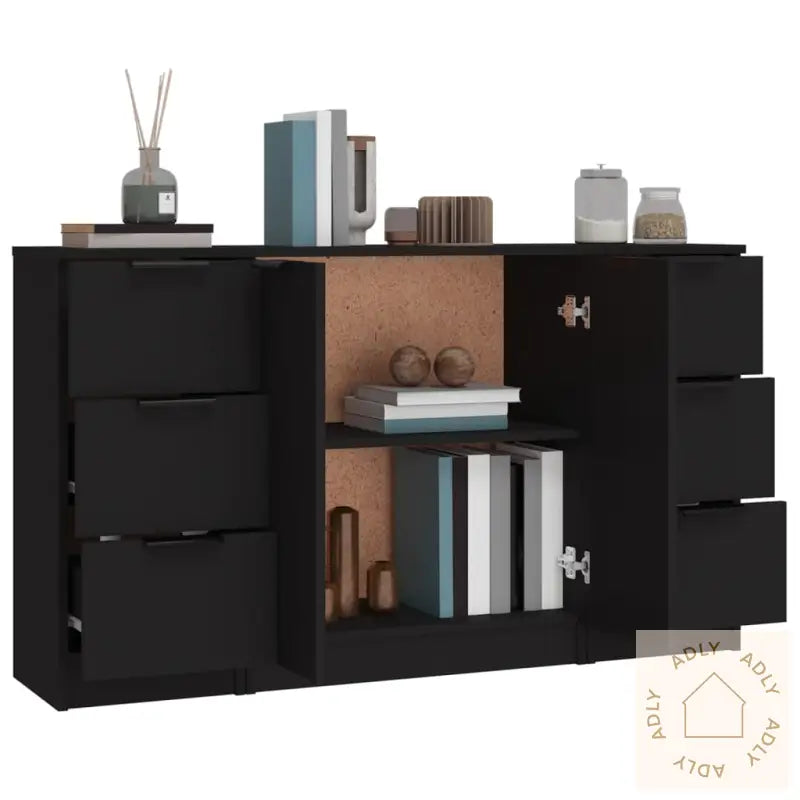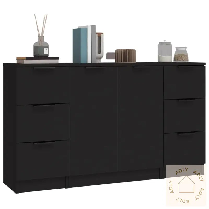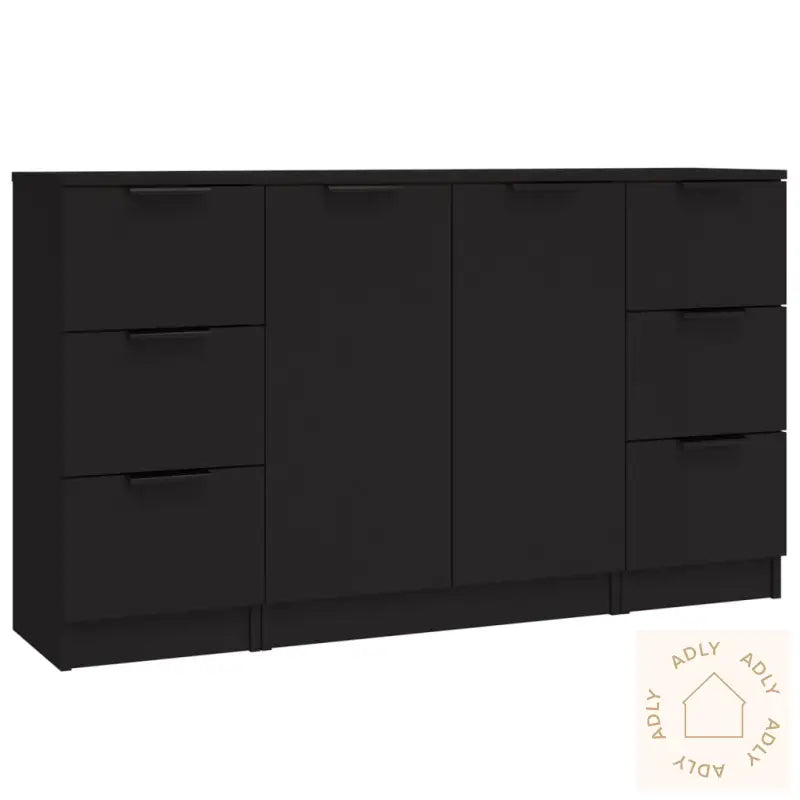 For ekstra sikkerhet bør du alltid benytte de medfølgende festene til å sikre produktet til veggen, slik at det ikke velter.Farge: SvartMateriale: Konstruert treMål (skjenk med 3 skuffer): 30 x 30 x 70 cm (B x D x H)Mål (skjenk med 2 dører): 60 x 30 x 70 cm (B x D x H)Leveransen inneholder:2 x skjenker med 3 skuffer1 x skjenk med 2 dører