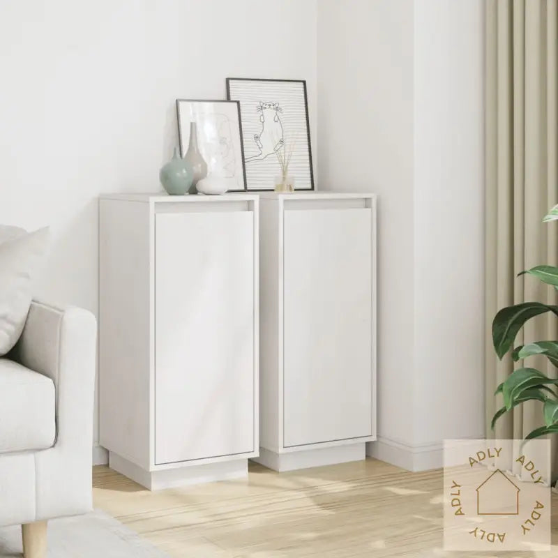 Disse skjenkene i tre gir et snev av eleganse og et stilig utseende til oppholdsrommet, og passer perfekt som møbler til hjemmet for deg som ønsker både funksjonalitet og et naturlig preg. Med sin tidløse design og lyse, hvite farge er disse sideskapene en enkel måte å friske opp interiøret på, samtidig som du får en praktisk oppbevaringsløsning.