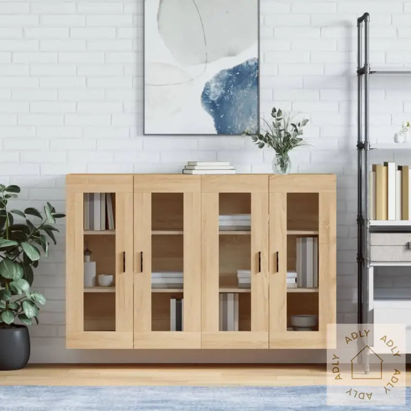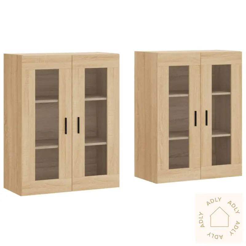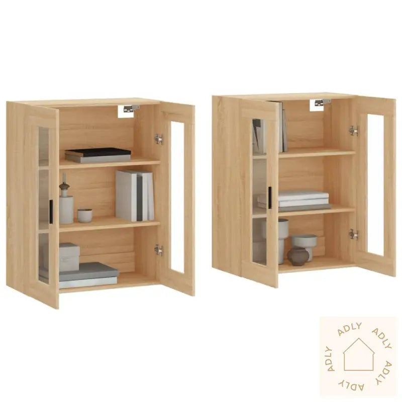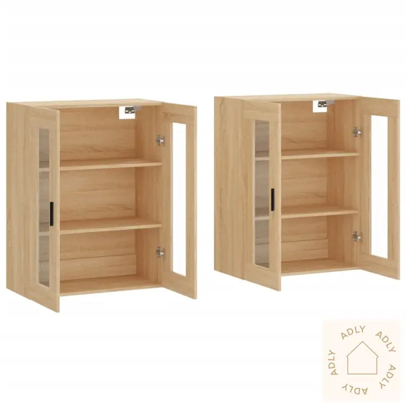 Skruer og plugger til veggmontering følger ikke med. Vi anbefaler å bruke festemidler som er tilpasset akkurat din veggtype. Hvis du er usikker, søk råd hos fagfolk og følg monteringstrinnene nøye.Farge: Sonoma eik – gir skapene et moderne uttrykk som passer flott sammen med andre hagemøbler eller møbler til hjemmet.Materialer: Konstruert tre, glassMål (hver): 69,5 x 34 x 90 cm (B x D x H)Montering kreves: jaLeveransen inneholder:2 x vegghengte skap