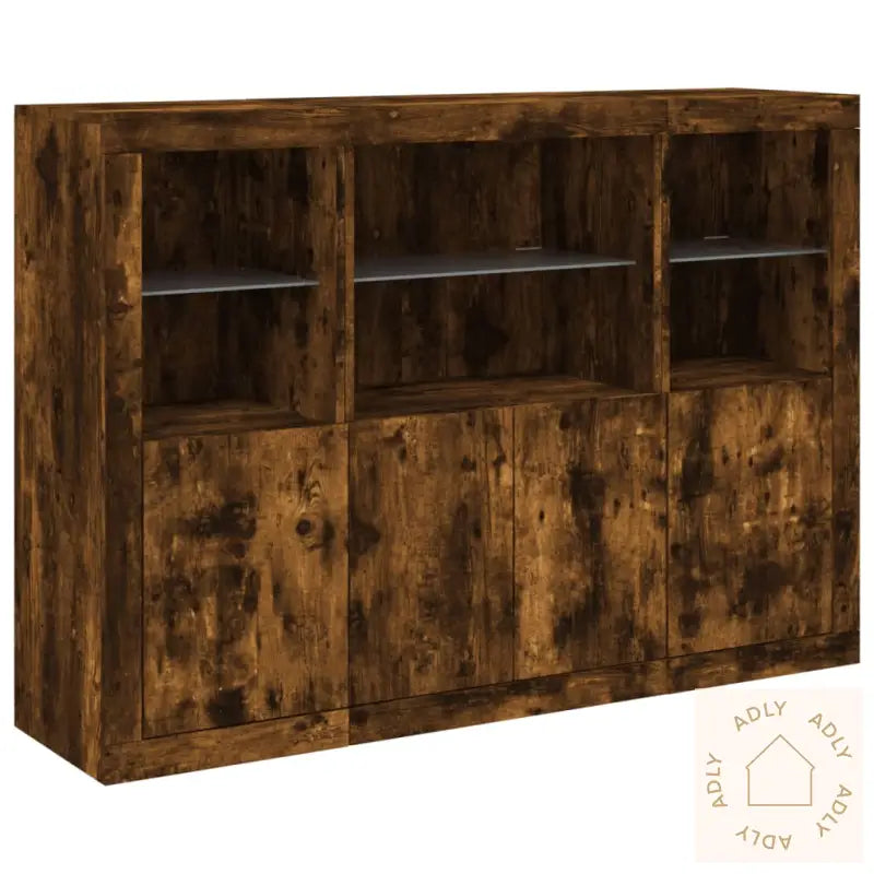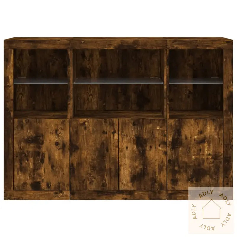Produktet leveres med USB-kontakt og krever en sertifisert 5V USB-strømkilde (ikke inkludert).Farge: Røkt eikMateriale: Konstruert tre, glassMål totalt: 142,5 x 37 x 100 cm (B x D x H)Montering krevesLeveransen inkluderer:2 x skjenker: 41 x 37 x 100 cm (B x D x H)1 x skjenk: 60,5 x 37 x 100 cm (B x D x H)Legal Documents: