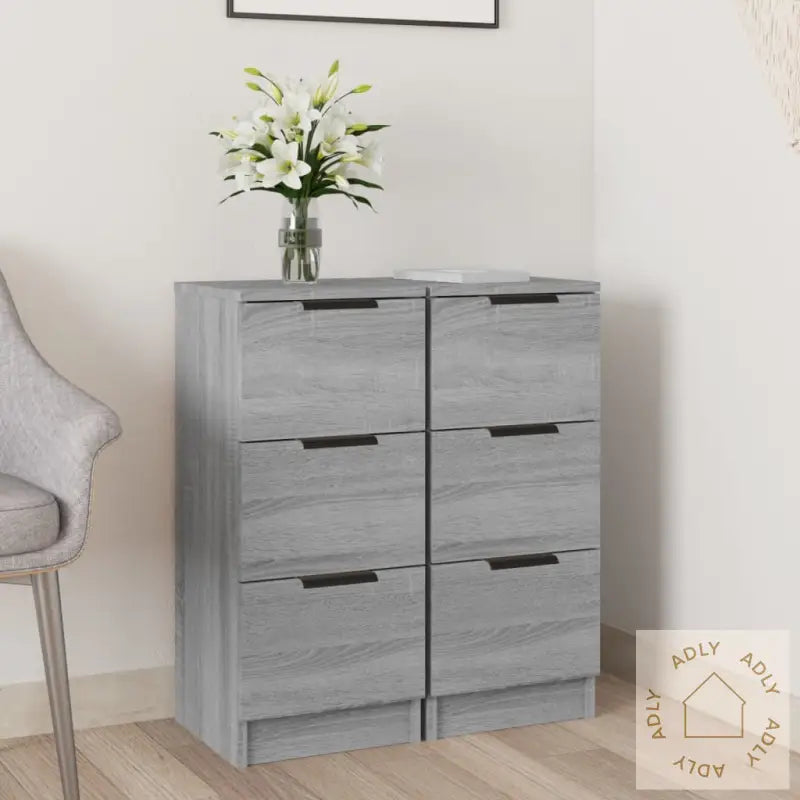 Stabilt materiale: Det konstruerte treverket byr på høy kvalitet, er slitesterkt og gir en glatt overflate. Dette sikrer solid stabilitet og god motstand mot fuktighet, noe som gjør skjenkene til pålitelige møbler for hjemmet over tid.Rikelig med lagringsplass: Med 3 adskilte skuffer får du masse plass til småting du ønsker å samle på ett sted. Du kan enkelt holde blader, bøker, DVD-er og multimediautstyr organisert og tilgjengelig, slik at hjemmet alltid føles ryddig og innbydende.Multifunksjonelt skap: Skjenkene er allsidige møbler til hjemmet – bruk dem som oppbevaringsskap til bøker og pyntegjenstander, som sidebord i stuen, eller som nattbord på soverommet. De passer dessuten godt sammen med både klassiske og moderne hagemøbler eller utendørsmøbler dersom du vil ha en gjennomført stil både ute og inne.Solid topp: Den stabile overflaten på toppen av skjenkene gir deg plass til å sette frem dekorative gjenstander, favorittbilder eller grønne planter for å sette et personlig preg på rommet.Advarsel: