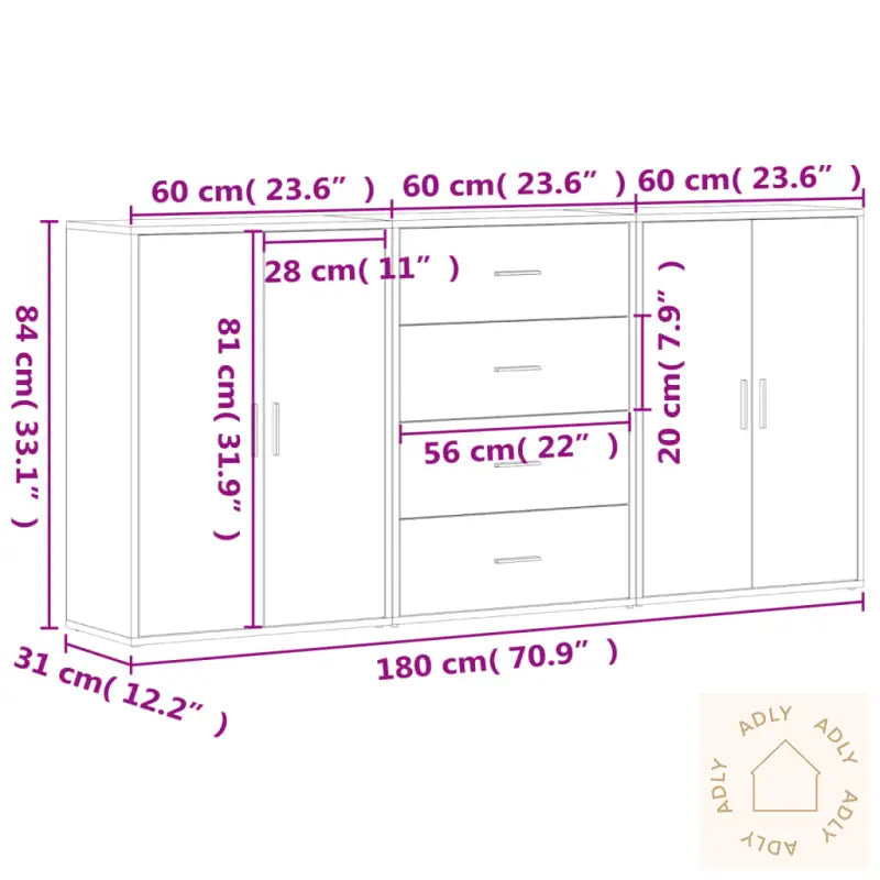 Slitesterkt materiale: Skjenkene er produsert av konstruert tre i høy kvalitet, kjent for sin glatte finish, styrke og stabilitet samt motstand mot fuktighet. Dette gjør at oppbevaringsskapet både varer lenge og er enkelt å holde rent – det trenger bare en fuktig klut for å skinne igjen.Rikelig med oppbevaringsplass: Med dette skapet får du god plass til å oppbevare alt fra magasiner og bøker til fjernkontroller og andre nødvendigheter, så alt holder seg organisert og lett tilgjengelig.Bred anvendelse: Den romslige toppen på hver skjenk gir deg ekstra plass til ting som mobiltelefoner, bøker, lamper eller dekor – her er det enkelt å tilpasse etter behov, uansett om du har behov for hjemmekontor, stue eller entre.Som et trygt valg blant møbler til hjemmet, er disse skjenkene designet med tanke på maksimal lastekapasitet og stabilitet.