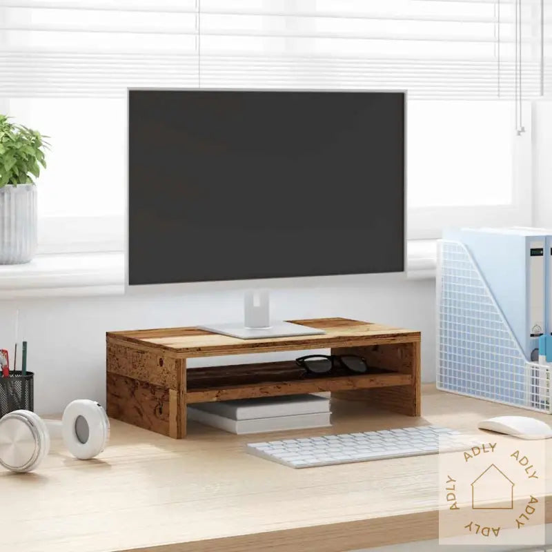 Stabilt og slitesterkt materiale: Skjermstativet er laget av konstruert tre – et robust og pålitelig valg kjent for sin holdbarhet. Overflaten er glatt, fukttålig og motstandsdyktig mot både vridning og sprekker, så du får kvalitetsmøbler som holder seg pene lenge og tåler daglig bruk.Ekstra lagringsplass: Den praktiske hyllen under skjermstativet gir god plass til å organisere små elektroniske enheter som tastatur, DVD-spiller eller spillkonsoll. Du kan også samle sammen penner, bærbare datamaskiner og andre kontorartikler her, slik at skrivebordet alltid ser ryddig ut – akkurat slik man forventer av gode møbler til hjemmet.Flere funksjoner: Bruk skjermstativet som TV-bord, monitorstativ eller til andre multimedieenheter – det passer like godt på skrivebordet som i stuen. Ved å løfte skjermen opp reduseres belastningen på nakke og rygg, noe som gir bedre ergonomi og komfort i hverdagen.Farge: gammelt treMateriale: konstruert treMål: 42 x 24 x 13 cm (B x D x H)Med lagringshylleMontering kreves: ja