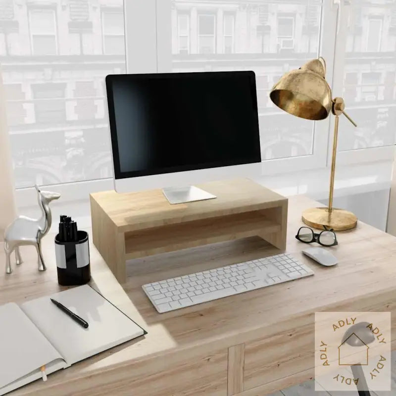 Dette praktiske skjermstativet med et stilig og minimalistisk design gir et moderne løft til oppholdsrommet, samtidig som det hjelper deg å plassere skjermen på et ideelt nivå for bedre komfort. Skjermstativet er laget av solid konstruert tre i trendy sonoma eik, som både sikrer stabilitet og gir et naturlig preg til hjemmet ditt. Dette møbelet passer perfekt som både TV-benk og holder til PC-skjerm, samt andre multimedieenheter du bruker jevnlig.