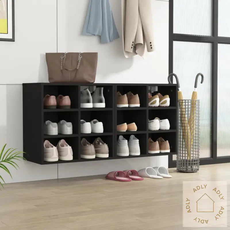 Det solide konstruerte treverket gir et eksklusivt uttrykk og en glatt overflate som er enkel å holde ren. Dette materialet er kjent for sin styrke, stabilitet og gode motstand mot fuktighet—noe som sikrer lang levetid på ditt nye oppbevaringsmøbel.Med 12 separate rom får du god plass til alle typer sko – fra sneakers til pensko. Rommene sørger også for at skoene kan luftes skikkelig når de settes bort, slik at de holder seg freshe lenger.Du velger selv om du vil ha skoskapet stående direkte på gulvet, eller spare plass ved å montere det på veggen. Uansett hva som passer ditt hjem eller din entré best, gir disse fleksible hverdagsmøblene deg flere muligheter til smart oppbevaring sammen med andre møbler til hjemmet.Advarsel: