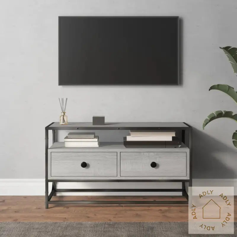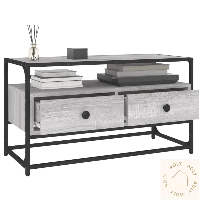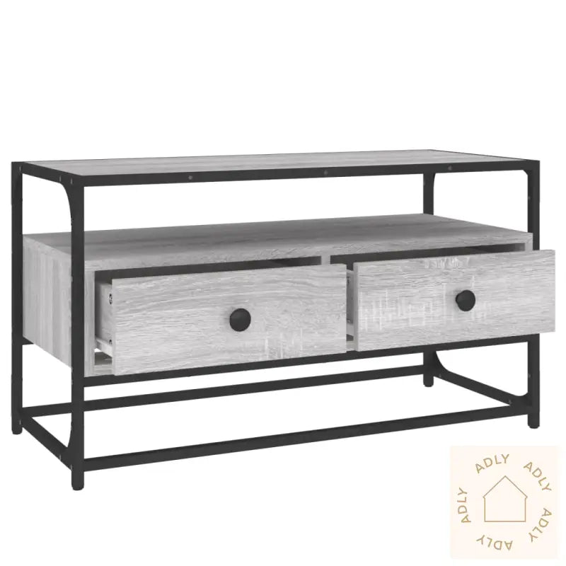 Slitesterkt materiale: Produsert i konstruert tre av høy kvalitet, kjent for sin glatte overflate og solide struktur. Materialet gjør møbelet robust, stabilt og motstandsdyktig mot fuktighet, så TV-benken holder seg pen over tid.Rikelig med lagringsplass: Med to praktiske skuffer får du god plass til å oppbevare alt fra magasiner og fjernkontroller til DVD-er og annet tilbehør. Perfekt for å holde stua organisert og fri for rot.Robust bordplate: Den stabile topplaten gir en trygg base for både TV-en og dekorative favoritter som fotorammer, potteplanter eller andre gjenstander som gir rommet personlighet.Metallføtter: De solide metallføttene sikrer et stabilt underlag, i tillegg til å gi benken et elegant og moderne uttrykk som passer sammen med nesten alle typer møbler og stiler.Farge: grå sonoma som matcher mange typer hagemøbler og annet interiørMaterialer: konstruert tre og stål for ekstra styrke og stabilitetMål: 80 x 35 x 45 cm (B x D x H) – ideell størrelse for både små og store romMontering kreves: ja, enkel veiledning følger med