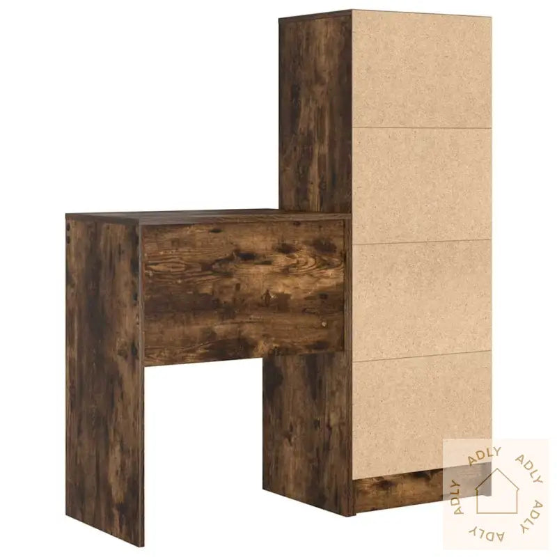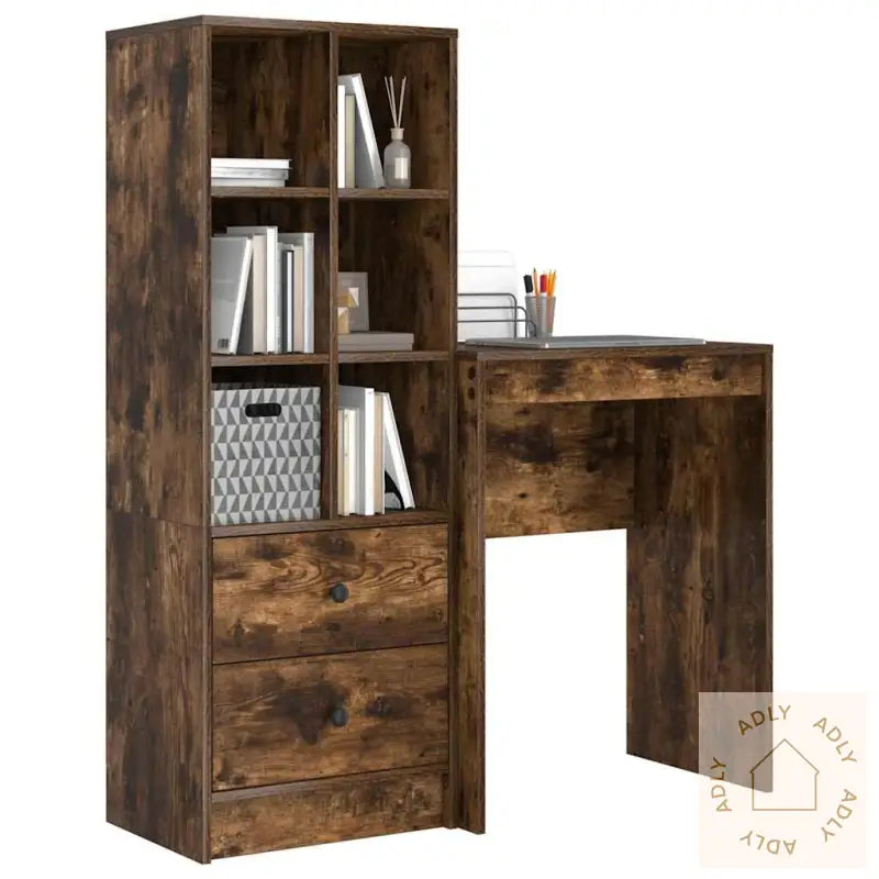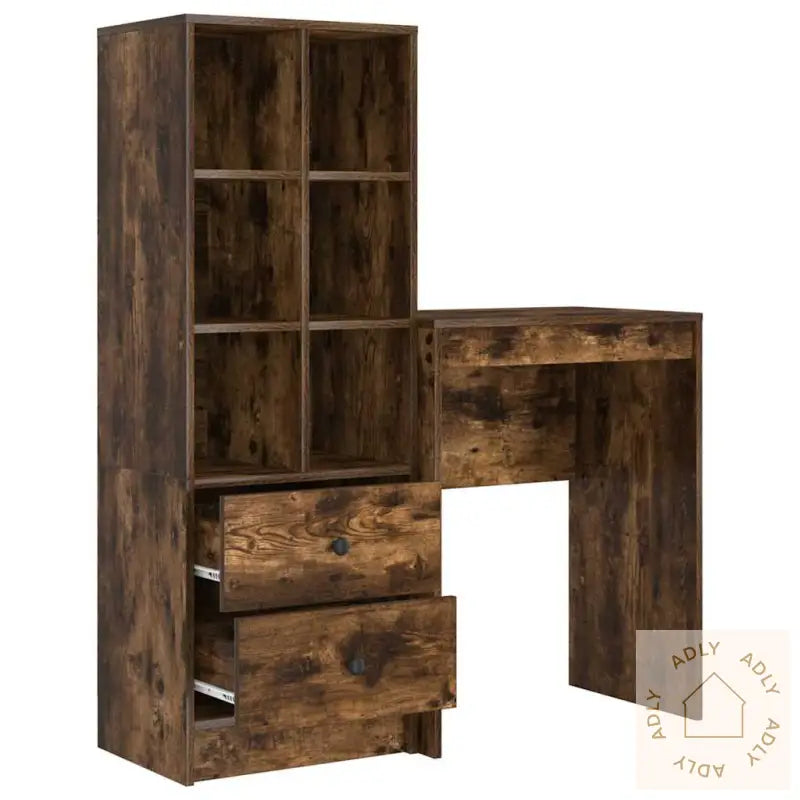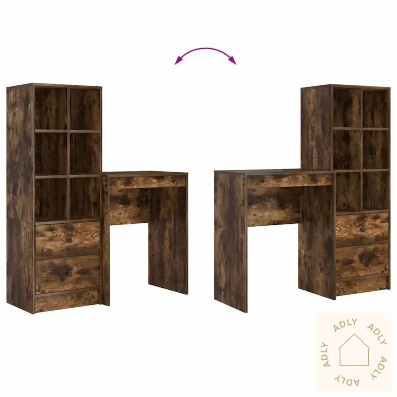 Dette vidaXL skrivebordet med lagring gir et moderne preg til ethvert arbeidsområde eller hjemmekontor. Laget av førsteklasses konstruert tre med en stilig røkt eik-finish, kombinerer skrivebordet både funksjon og design, slik at du får et inspirerende sted å studere, skrive eller jobbe på datamaskinen. Praktiske løsninger for lagring gjør dette skrivebordet ideelt for deg som liker å holde ting ryddig, og det passer perfekt sammen med andre møbler til hjemmet – enten du har behov for ekstra plass i hjemmekontoret eller bare vil oppgradere stilen i rommet.