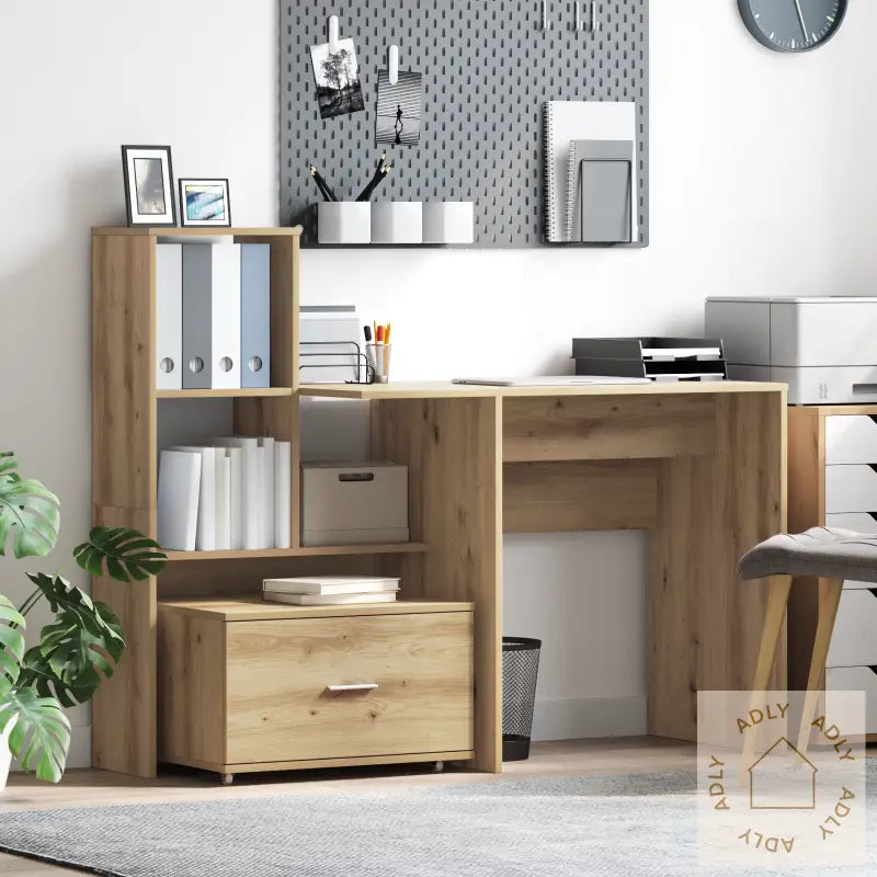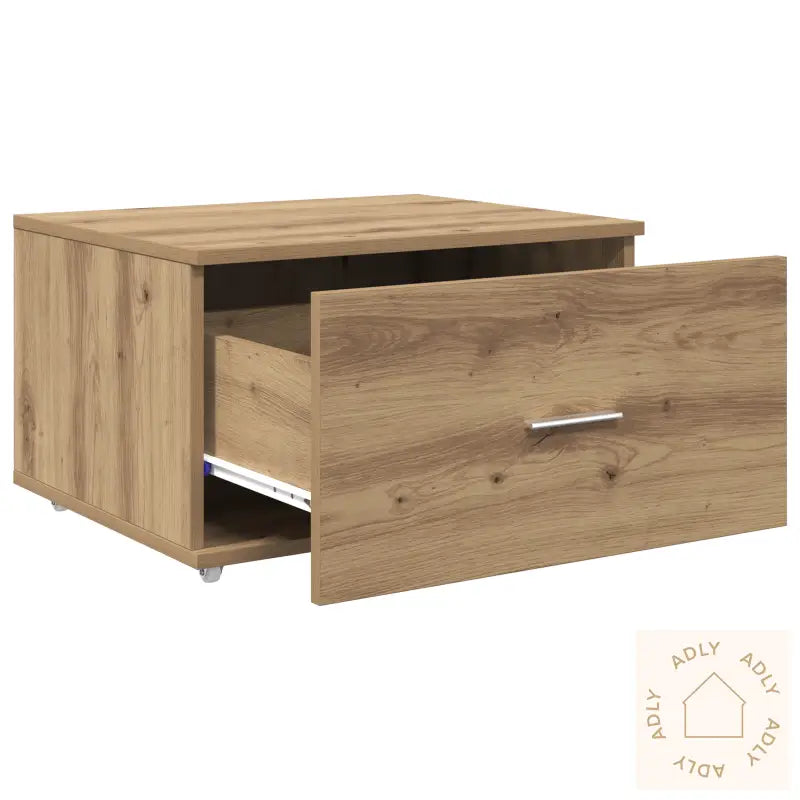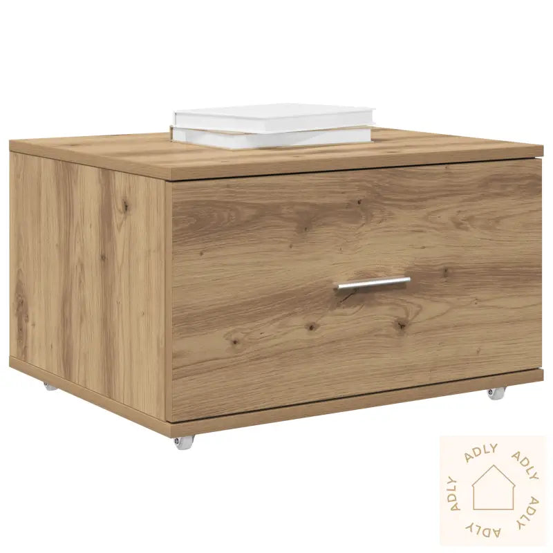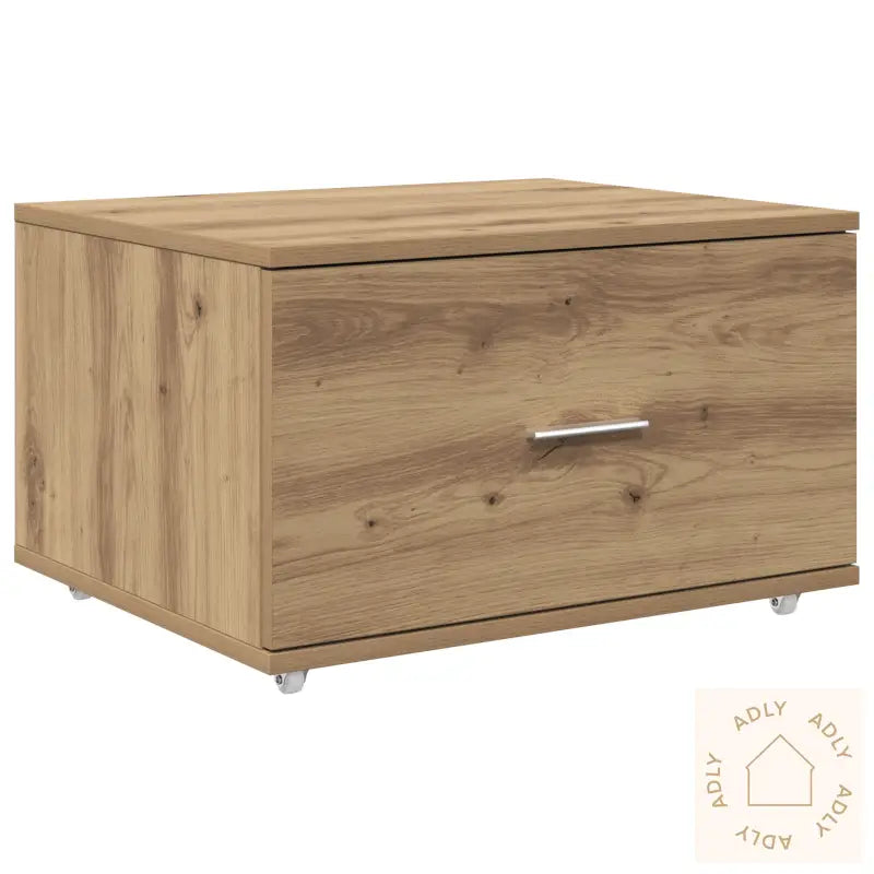 Dette skuffeskapet har en moderne stil som enkelt glir inn i både stue og kontor, og gir rommet et friskt og tidsriktig preg. Laget i kvalitets sponplate, kombinert med en håndverksinspirert eikefinish, får skapet et varmt og elegant uttrykk. Den glattlakkerte overflaten fremhever den moderne følelsen og gjør at skapet ikke bare ser bra ut, men også er lett å holde rent og pent.