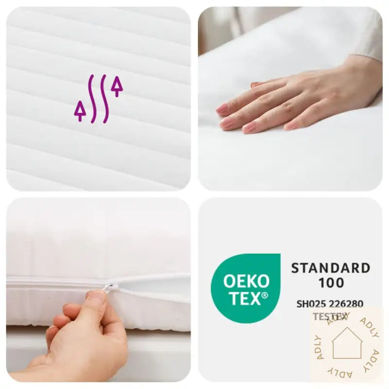- Pustende trekk: Madrasstrekket er laget av et mykt, strikket stoff som puster. Det gir god fuktregulering og sikrer at madrassen holder seg frisk og tørr hele natten. Den gode luftsirkulasjonen gjør det ekstra behagelig, spesielt om sommeren.