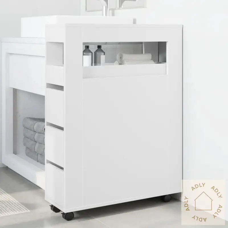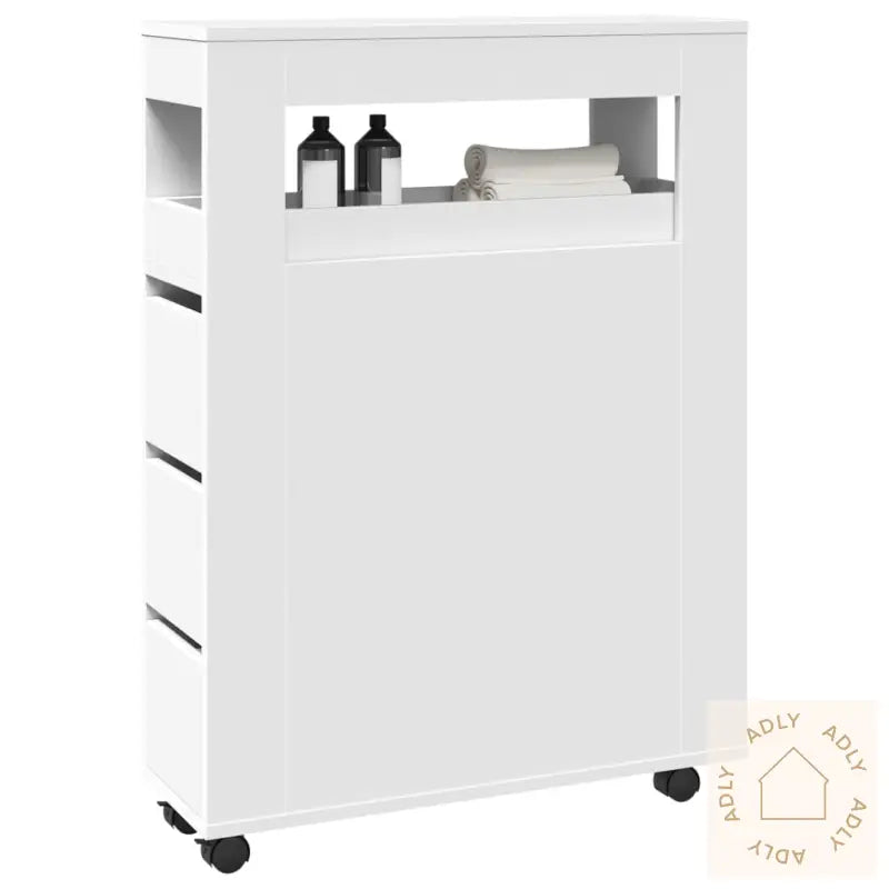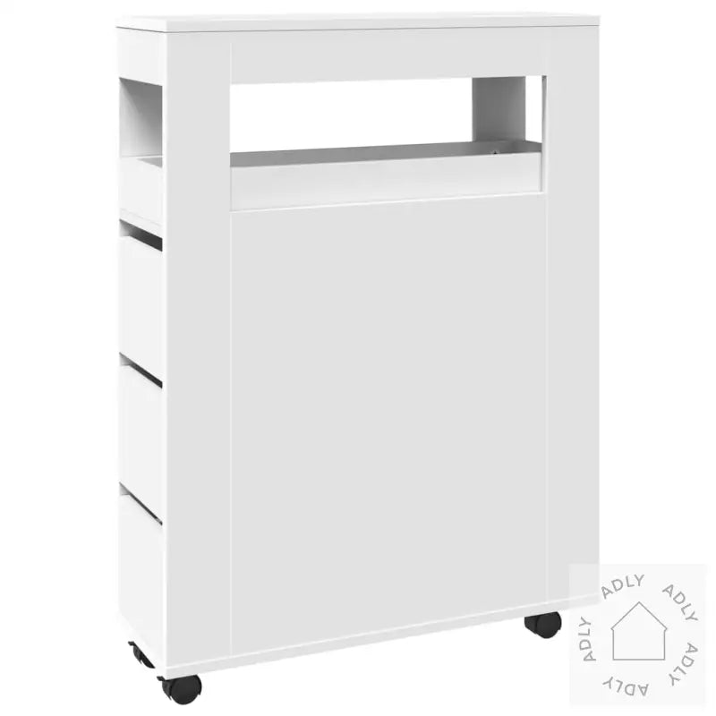 Stabilt og slitesterkt materiale: Skapet er laget av konstruert tre, et robust og stabilt materiale med jevn overflate. Dette gjør slanke baderomsskapet motstandsdyktig mot fukt, sprekker og vridning – perfekt for våtrom hvor fuktighet ofte kan være et problem. Det gir god holdbarhet og sørger for at du har glede av skapet i mange år fremover.Rikelig med oppbevaringsplass: Det smale, men dype designet gir overraskende mye lagringsplass. Hyllene og skuffene beskytter tingene dine mot støv og smuss, og gjør det enkelt å holde alt fra toalettartikler til rengjøringsmidler ryddig og lett tilgjengelig. Slike bokhyller og stående hyller gir deg fleksibiliteten du trenger for effektiv organisering.Enkel å flytte: De fire svingbare hjulene gjør det lekende lett å flytte dette slanke baderomsskapet til ønsket sted. To av hjulene har bremser slik at du trygt kan parkere skapet der du ønsker, uten at det sklir rundt.Enkelt å bruke: Med kvalitetsskinner i metall glir skuffene jevnt ut. Dette gir deg enkel tilgang til innholdet, og gjør organiseringen av småting på badet både rask og oversiktlig.Allsidig bruk: Skapet passer ikke bare til badet – det smale designet gjør det også ideelt som oppbevaringsskap eller kommode på kjøkkenet, i stuen eller andre steder der plassen er begrenset. Møbler til hjemmet som tilbyr denne typen fleksibilitet gir stor verdi i hverdagen.Farge: HvitMateriale: Konstruert treSamlet mål: 65 x 23 x 90 cm (B x D x H)Mål skuff: 19 x 43,5 x 16 cm (B x D x H)Mål øverste skuffeboks: 16 x 60 x 55 cm (B x D x H)Lastekapasitet hylle: 20 kgLastekapasitet per skuff: 5-8 kgTotal lastekapasitet: 60 kgAntall hjul: 4 (2 med bremser)Montering kreves: ja