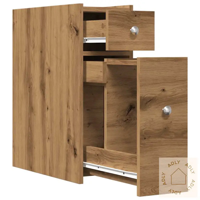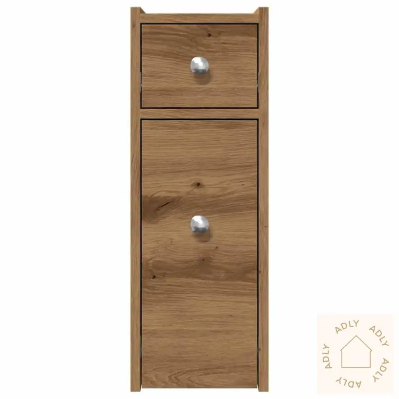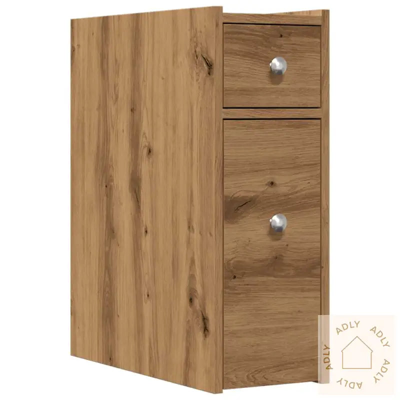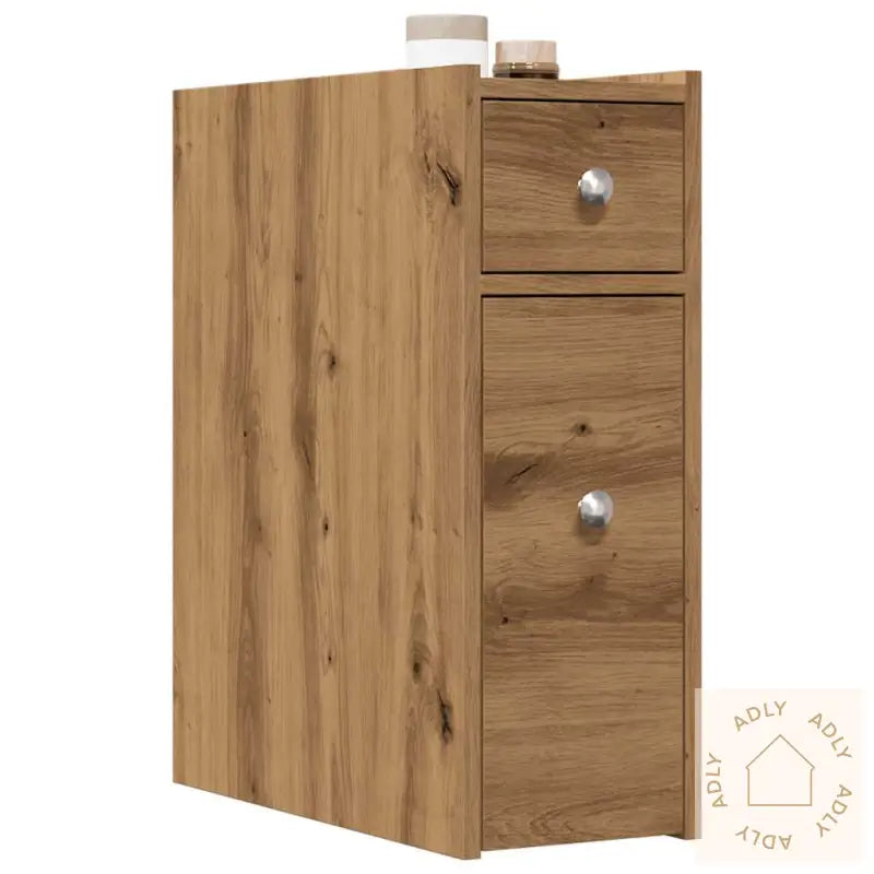 Dette klassiske, smale baderomsskapet er designet for å være både dekorativt og praktisk, samtidig som det tilfører stil til hjemmet ditt. Med sitt slanke design passer det perfekt selv på små bad, og gir smart oppbevaring uten å ta for mye plass. Skapet kommer i fargen artisan eik, som gir et varmt og moderne uttrykk, enten du plasserer det på badet, kjøkkenet eller i stuen sammen med dine andre møbler til hjemmet.
