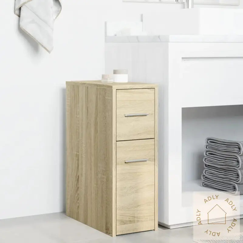 Dette klassiske og smale baderomsskapet i moderne design er både dekorativt og superpraktisk – et smart valg for deg som vil ha funksjonelle møbler til hjemmet. Skapet tilfører litt ekstra stil med sin tidløse sonoma eik-finish, samtidig som det gir deg en god og plassbesparende oppbevaringsløsning, enten du bruker det på badet eller andre steder der du trenger orden.