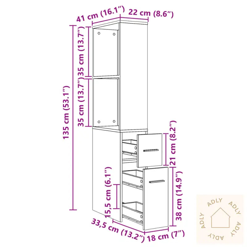 Allsidig: Med sitt tynne og stilrene design, kan dette smale baderomsskapet brukes i flere rom, ikke bare på badet. Det fungerer supert som oppbevaringsskap eller kommode også på kjøkken, vaskerom eller stue – en smart løsning for deg som trenger fleksible og praktiske møbler til hjemmet.Advarsel: