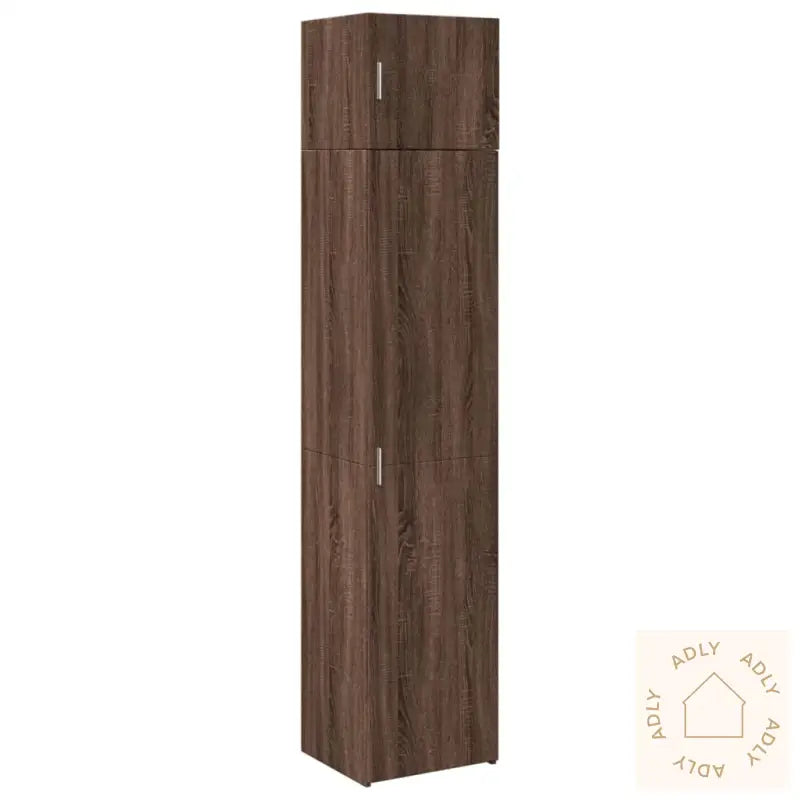 Dette slanke oppbevaringsskapet i brun eik har 2 skap i ulike størrelser og gir deg ekstra oppbevaringsplass hjemme. Skapets moderne design passer perfekt med andre møbler til hjemmet, og den kompakte formen gjør det enkelt å plassere selv der plassen er begrenset.