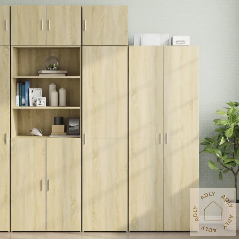 Stabilt og slitesterkt materiale: Skapet er laget av konstruert tre med sonoma eik-finish. Dette materialet er kjent for å være robust og holdbart, samtidig som overflaten er jevn og lett å rengjøre. Den motstår både fukt, vridning og sprekker, noe som gjør det til et trygt valg for alle slags hjem.Rikelig med oppbevaringsplass: Med flere rom får du plass til bøker, pyntegjenstander, dekor eller andre småting som trenger organisering. Totalt åtte separate rom hjelper deg å holde orden uansett hvilket rom du setter skapet i.2 dørinstallasjonsmåter: Du kan montere døren på enten høyre eller venstre side, så det passer perfekt uansett hvor du vil plassere skapet hjemme.Plassbesparende: Dette høye skapet gjør god bruk av vertikal plass og gir deg mulighet til å lagre mye uten at det tar for stor plass på gulvet. En smart løsning for små leiligheter eller rom der areal må utnyttes effektivt.Flere bruksområder: Skapet passer like godt på badet, soverommet, stuen, kjøkkenet, arbeidsrommet, kontoret eller i garasjen. Dens tidløse design i sonoma eik gjør at det glir inn i alle typer interiør, og det kompletterer også utendørsmøbler og hagemøbler dersom du ønsker en helhetlig stil gjennom hjemmet.Advarsel: