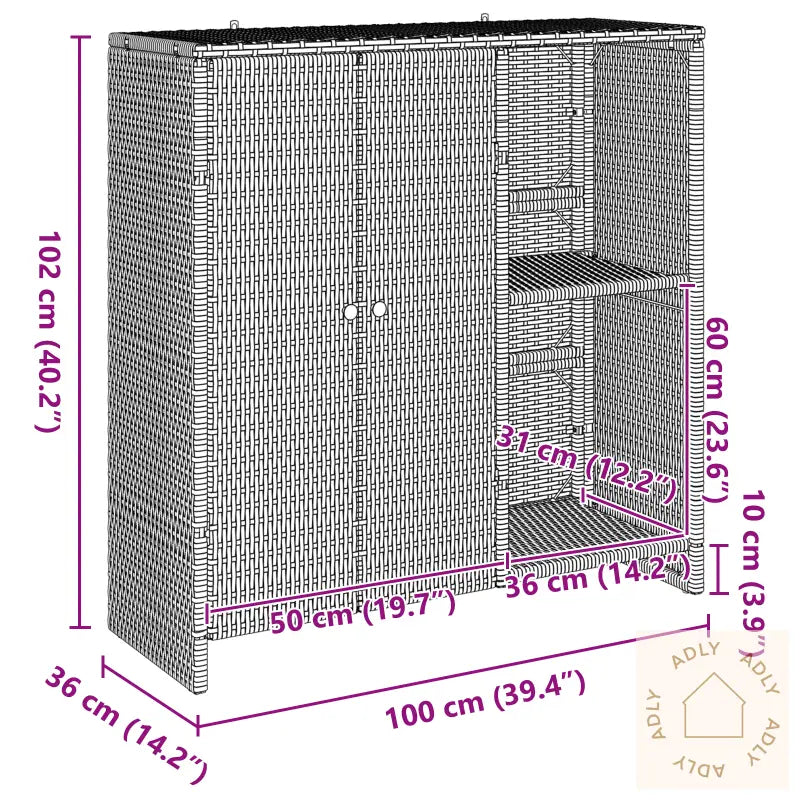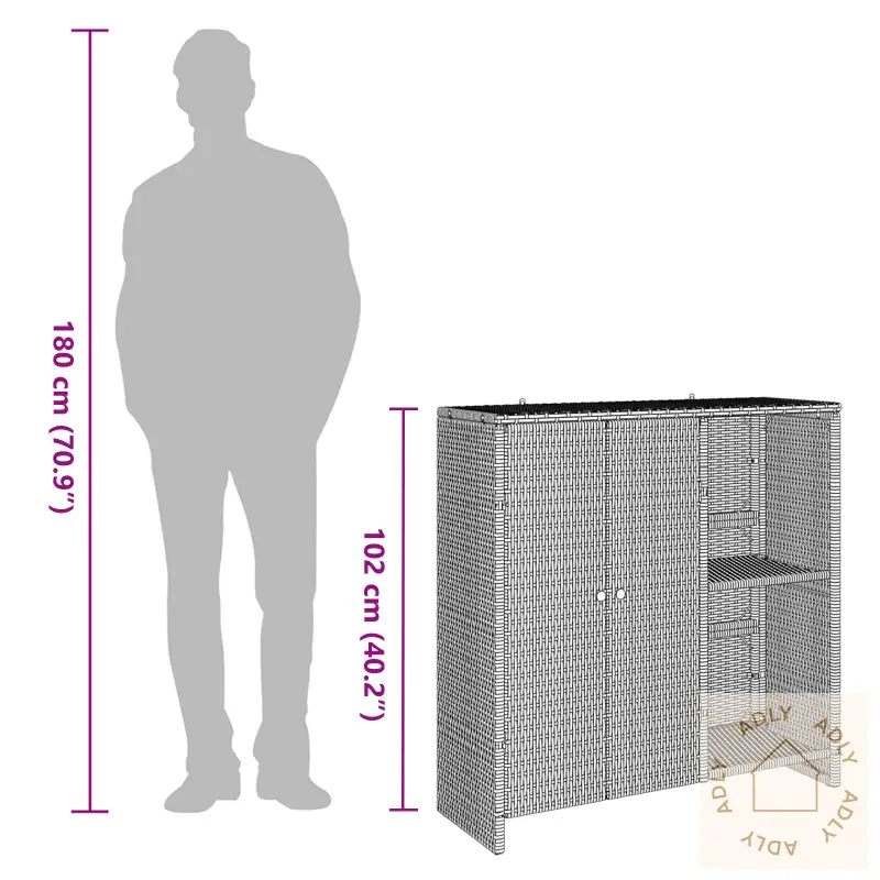 Farge: SvartForm: RektangulærMateriale: Naturlig rottingOverflate: TeksturertInnendørs/Utendørs: Kun utendørsAntall dører: 2Beskyttelse inkludert: NeiRom: GarasjeBatterier inkludert: NeiMaksimal vekt: 60 kgOverflatehøyde: 2 cmSvingdører: NeiMerke: Leveransen inneholder: LagringsskapMontering kreves: JaAnbefalt antall personer for montering: 2