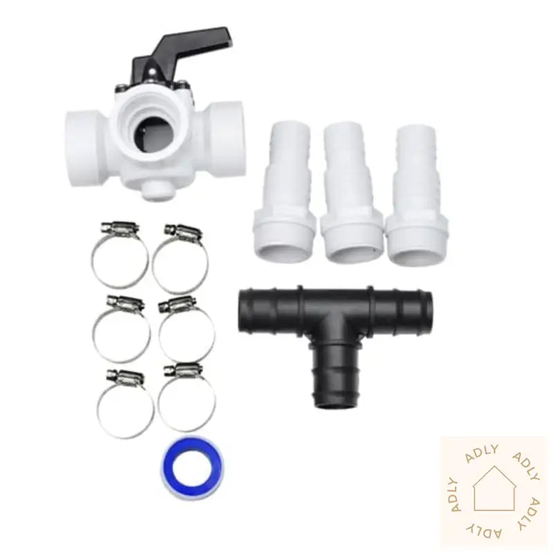 Leveringen inkluderer: 2 x solpaneler, 2 x 1 x 3-veis ventiler, 2 x 1 x D-slangeforbindelser, 2 x 3 x adaptere, 2 x 6 x slangeklemmer, 2 x 1 x teflonteip.