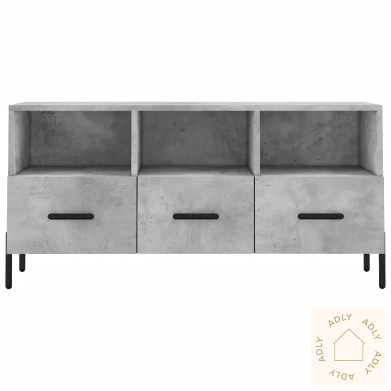 TV-benken er laget av konstruert treverk som har en ekstra jevn overflate og utmerker seg med både styrke, stabilitet og god motstand mot fukt. Takket være materialet er den enkel å holde ren, noe som gjør dette til en smart investering blant dine møbler.Med tre åpne rom og tre skuffer får du masse fleksibel oppbevaringsplass til alt fra magasiner, fjernkontroller og DVD-er til småting du vil ha lett tilgjengelig. Her kan du enkelt organisere elektronikk og tilbehør for en ryddig og innbydende TV-sone.Topplaten på medieskapet har plass til dekorative detaljer som rammer, potteplanter eller accessories – perfekt hvis du liker å gi hjemmet ditt litt ekstra personlighet med bokhyller og stående hyller, eller pyntegjenstander som matcher resten av interiøret.TV-benken hviler på solide ben i jern, som gir et robust fundament og samtidig tilfører et lunt, industrielt preg. Jernbena sørger for at møblet står stødig, uansett hvilket gulv du har.Advarsel: