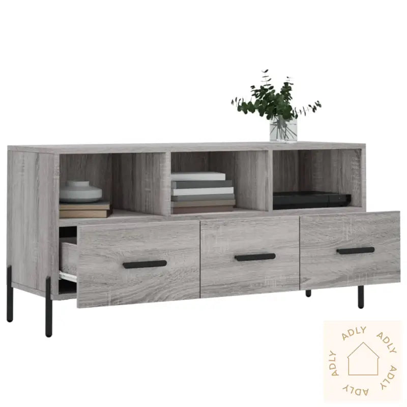 For å ivareta sikkerhet i hjemmet bør medfølgende festemidler brukes for å sikre TV-benken til veggen, slik at risikoen for at møblet kan velte elimineres.Farge: grå sonomaMaterialer: konstruert tre, jernMål: 102 x 36 x 50 cm (B x D x H)Montering kreves: jaLegal Documents: