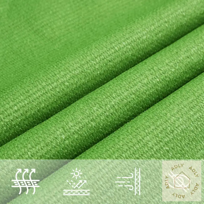 Farge: lysegrønnMateriale: 100% HDPEMål: 4 x 4 x 4 mForm: trekantetCa. 90% UV-beskyttelseVind- og vanngjennomtrengende for behagelig inneklimaPustende, muggsikkert og UV-bestandig HDPE-materialeRustfrie stålfester i hvert hjørne3 stk. 1,5 m PE-tau inkludert for enkel montering