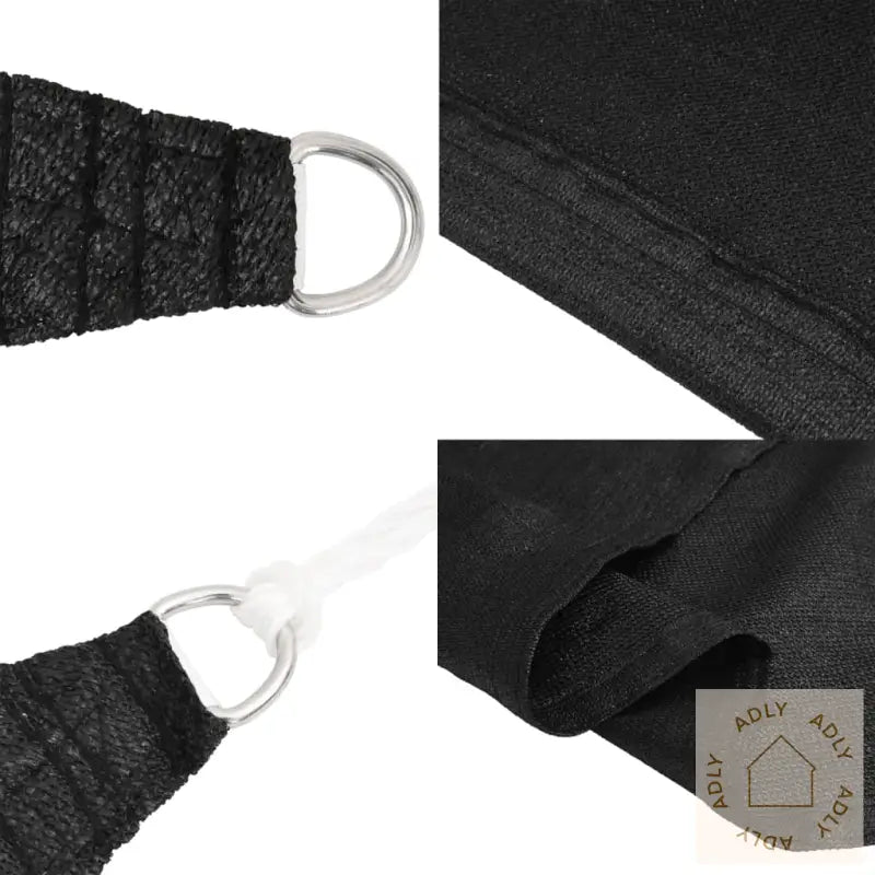 Farge: svartMateriale: HDPEMål: 5 x 5 x 6 mForm: trekantetGir omtrent 90% UV-beskyttelseVind- og vanngjennomtrengende for et sunt utemiljøPustende HDPE – mugg- og UV-bestandigStålfester i rustfritt stål i hvert hjørne for enkel monteringLeveres med 3 x 1,5 m PE-tau