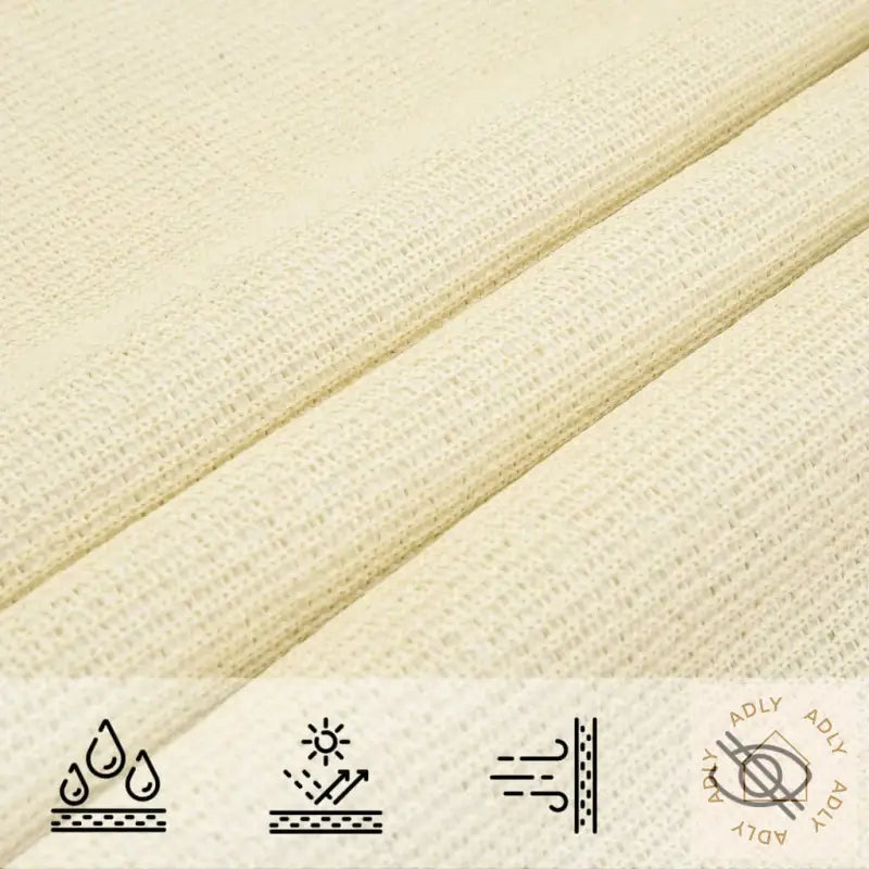 Farge: kremhvit – passer til de fleste utemøbler og gir et lyst, tidløst uttrykkMateriale: 100% HDPE av høy kvalitetMål: 4 x 7 m (L x B), ideell størrelse for store og små uteplasserForm: rektangulær, lett å tilpasse ulike miljøerCa. 90 % UV-beskyttelse – beskytter deg og familien effektivt mot sterke solstrålerPustende materiale som er både vind- og vanngjennomtrengeligMugg- og UV-sikkert HDPE – minimal risiko for misfarging eller skadeRustfrie stålfester i hvert hjørne gir ekstra holdbarhet4 x 1,5 m PE-tau følger med for enkel monteringMontering nødvendig: nei – alt du trenger følger med i pakken