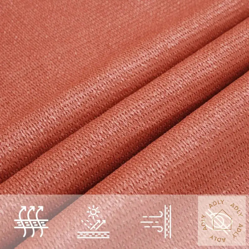 Farge: terrakottaMateriale: HDPEMål: 2 x 3 m (L x B)Form: rektangulærCa. 90% UV-beskyttelsePustende, vind- og vanngjennomtrengelig materialeMugg- og UV-bestandig HDPE, enkel å rengjøreFester i rustfritt stål i hvert hjørne for trygg montering4 x 1,5 m PE-tau inkludert